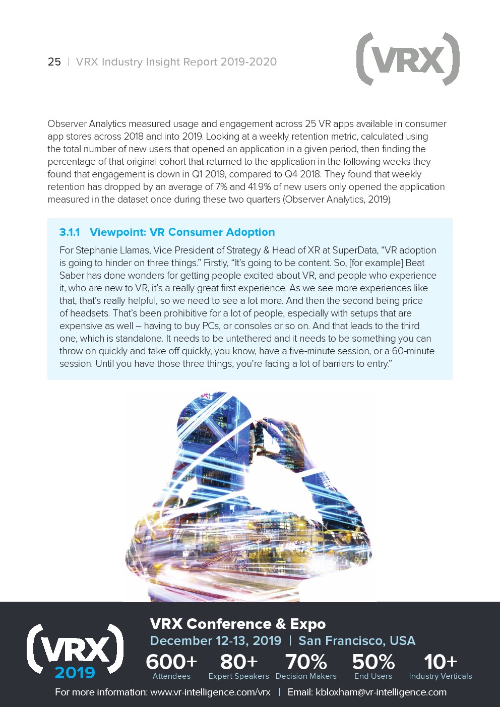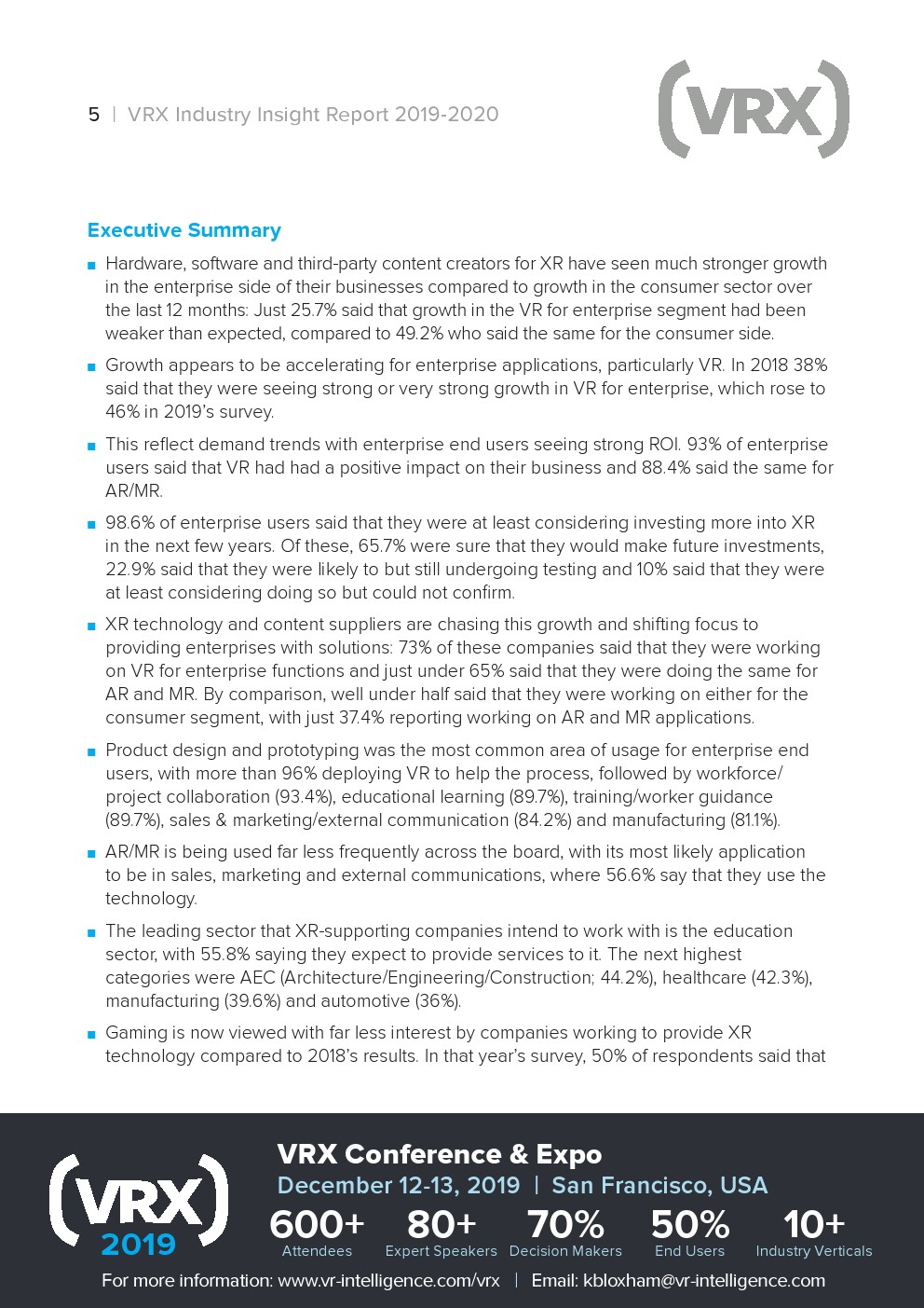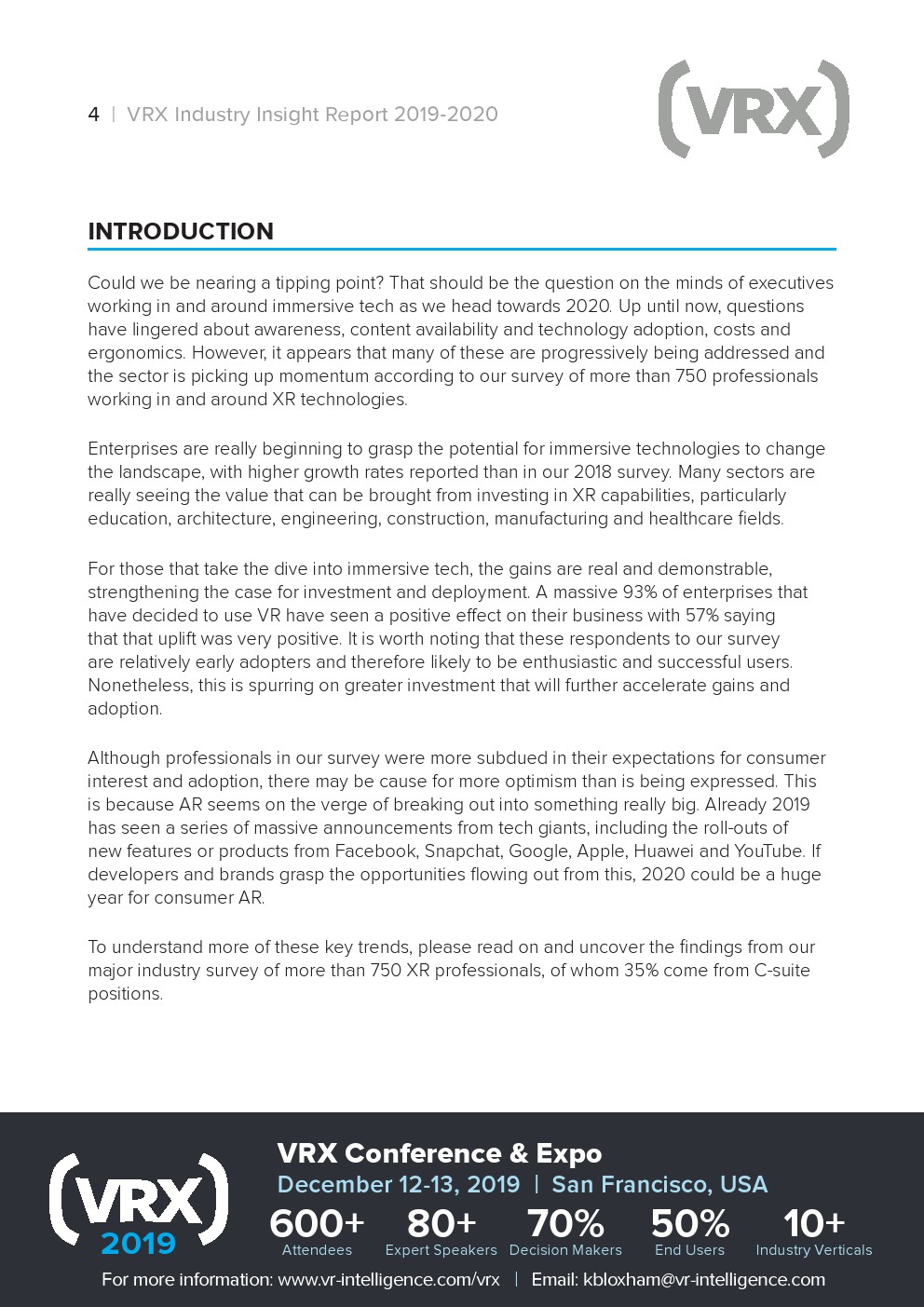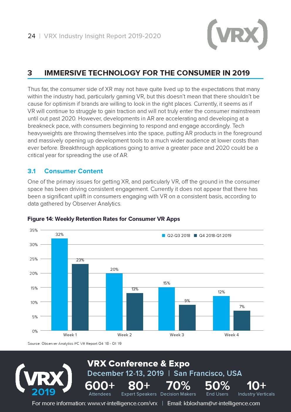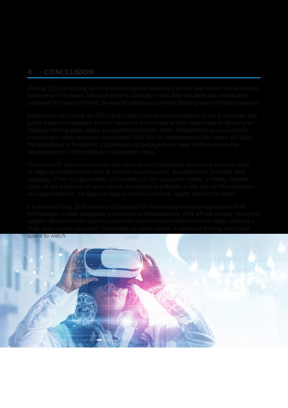 Alex Hadwick发布了“2019-2020 XR产业报告”。过去12个月,企业级XR硬件、软件和第三方内容创作增长远远高于消费者市场。只有25.7%的受访者表示,企业级VR增长比预期的要弱,对消费者市场有同样看法的占49.2%。