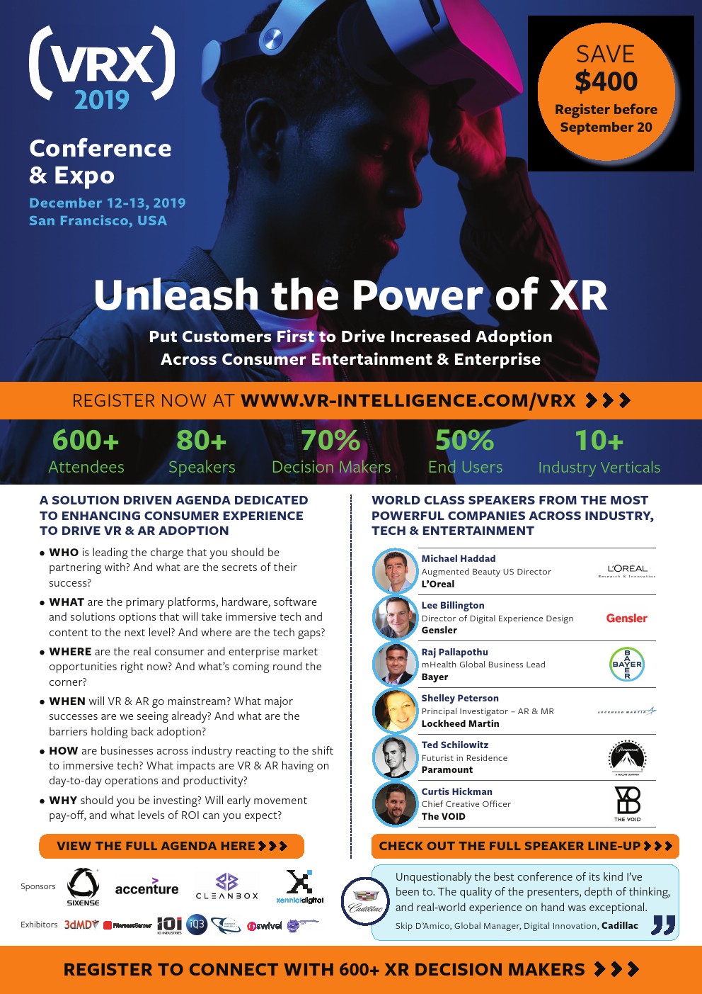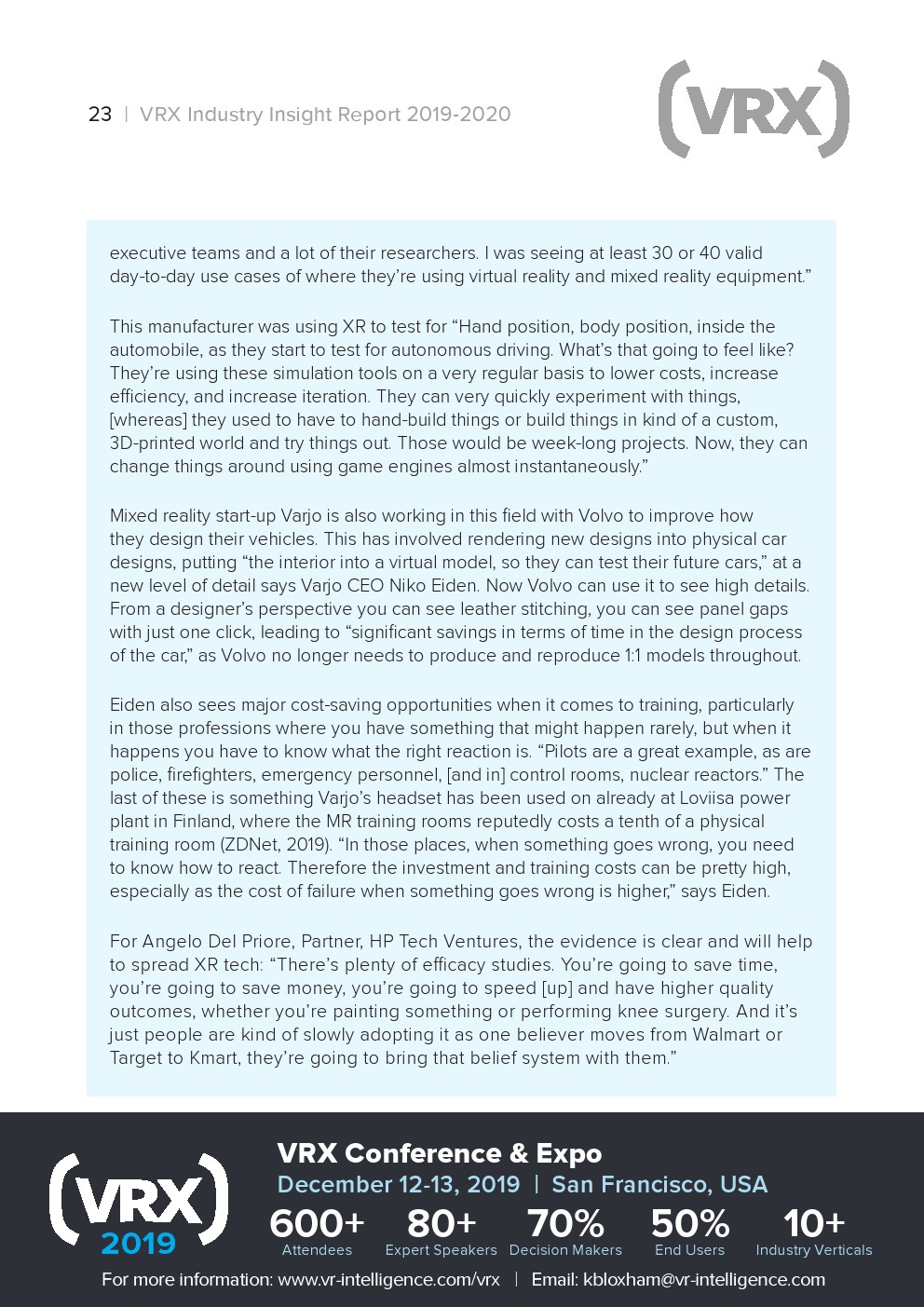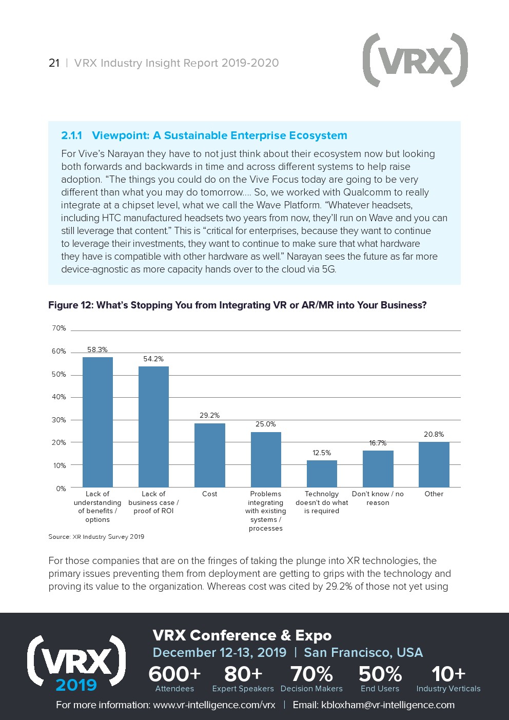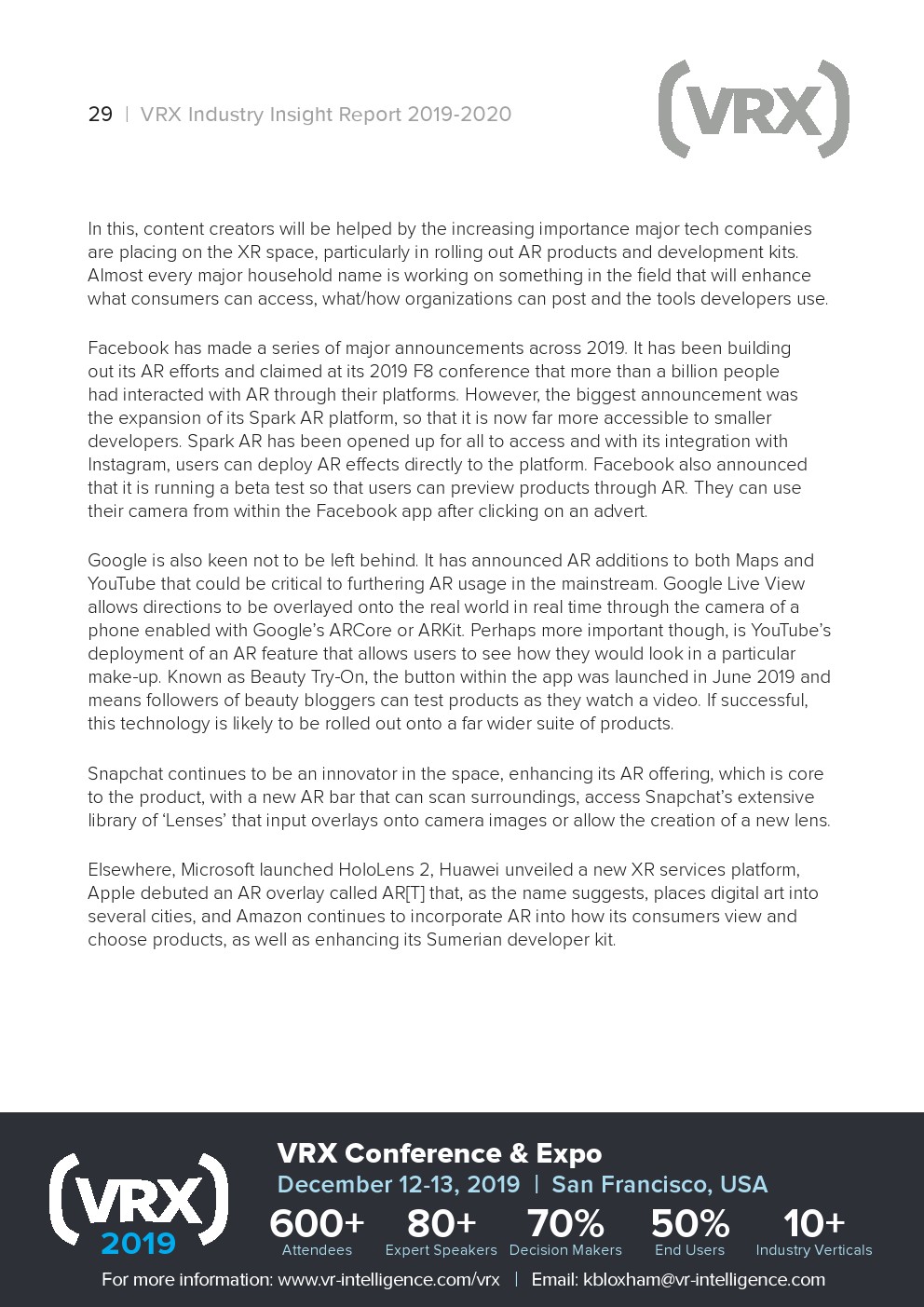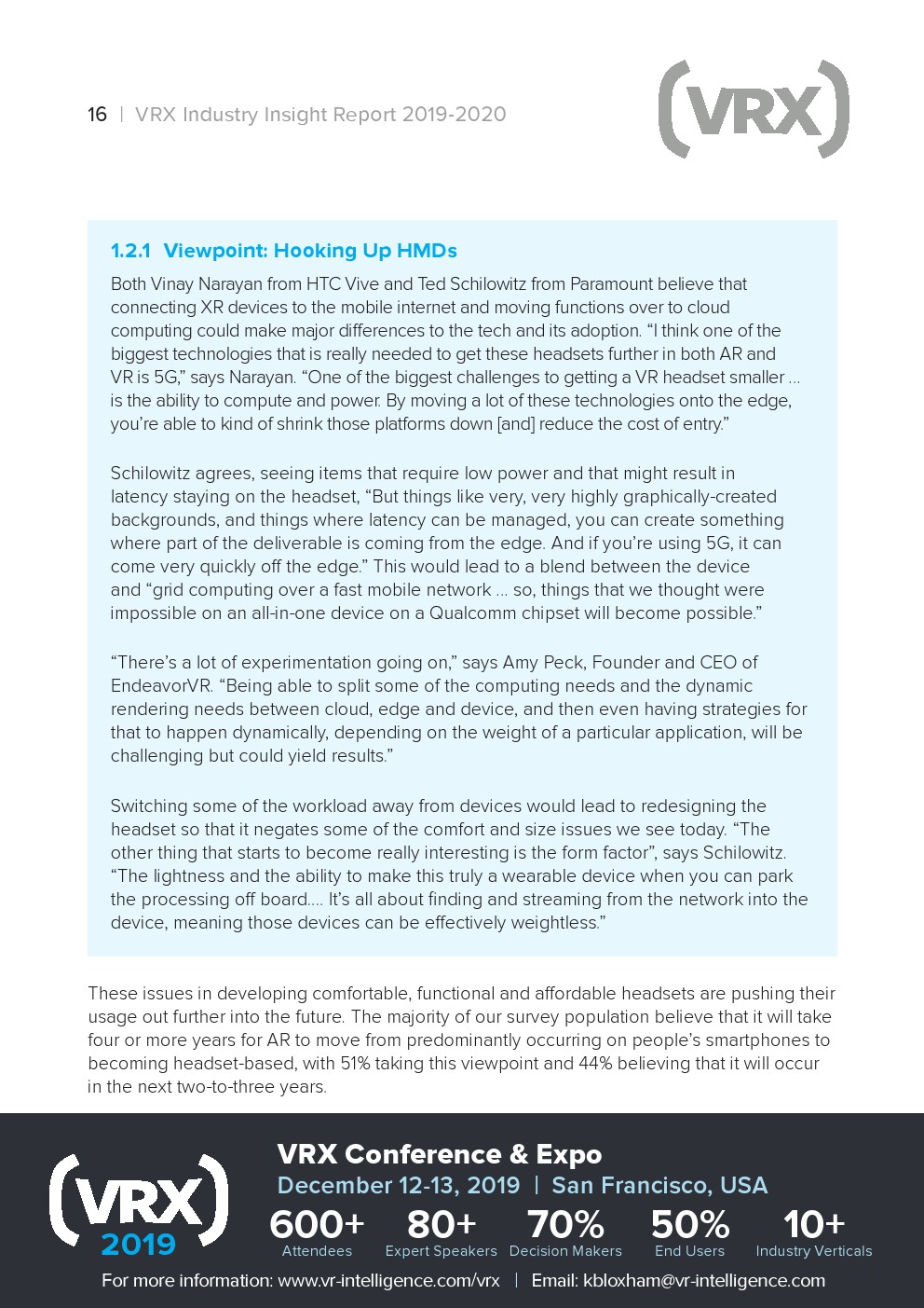 Alex Hadwick发布了“2019-2020 XR产业报告”。过去12个月,企业级XR硬件、软件和第三方内容创作增长远远高于消费者市场。只有25.7%的受访者表示,企业级VR增长比预期的要弱,对消费者市场有同样看法的占49.2%。