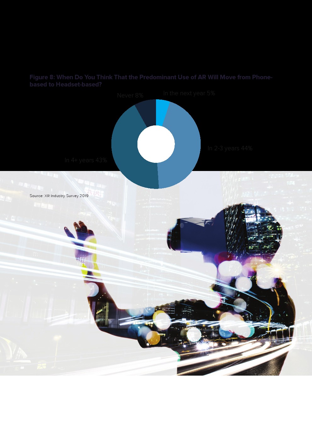 有55.8%的XR公司希望为教育部门提供服务,其次是AEC(建筑/工程/建筑,42.2%)、医疗保健 (42.3%)、制造业 (39.6%)和汽车 (36%)。