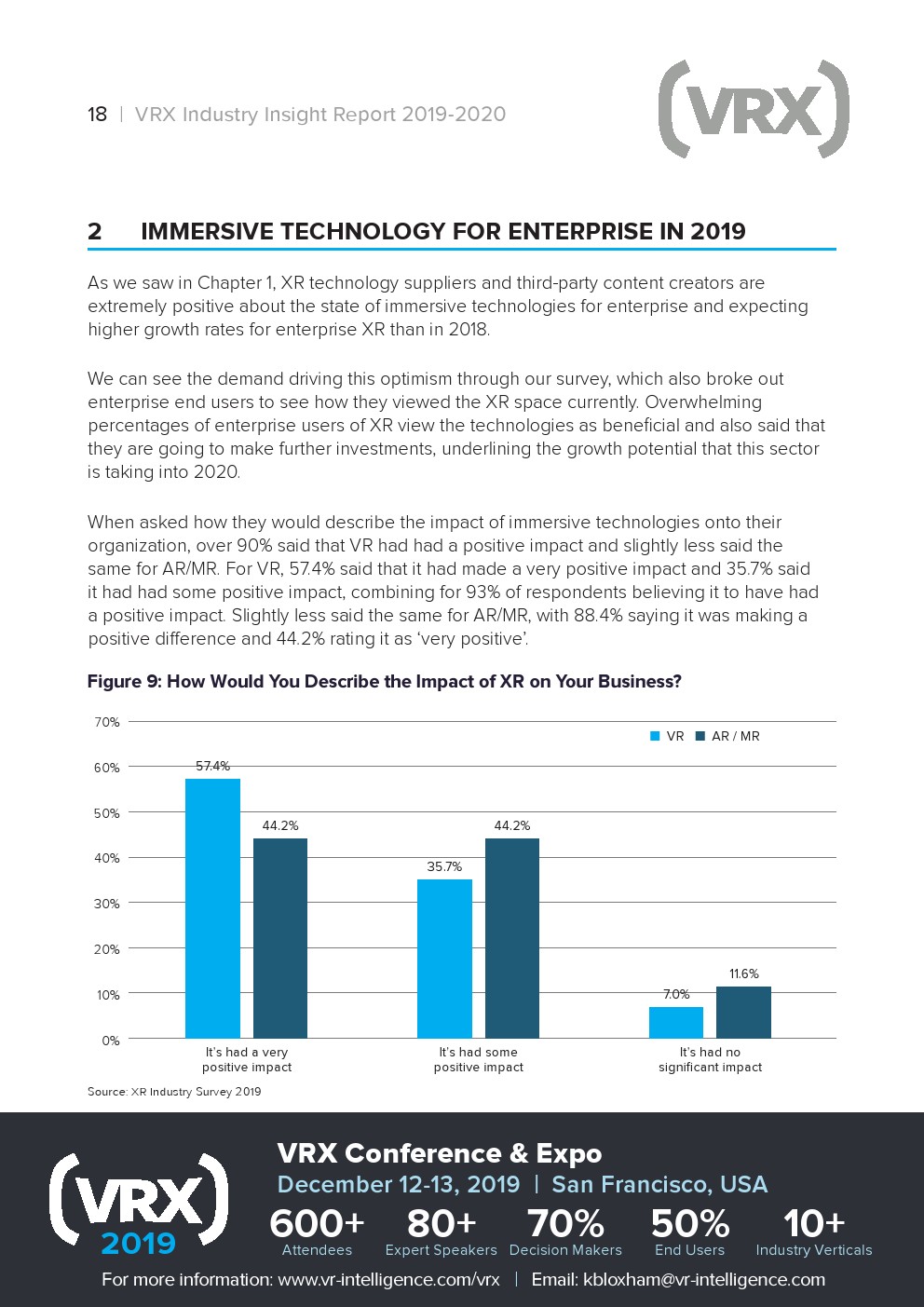 93%的企业用户认为VR对他们的业务产生了积极的影响,88.4%的企业用户表示AR/MR有同样的影响。