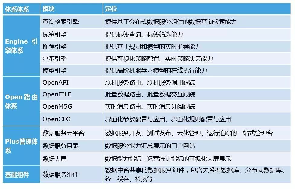 ▲ 表1 数据中台核心模块