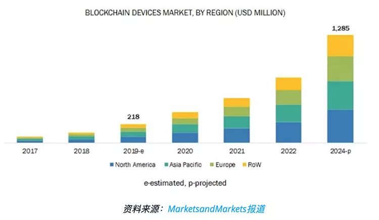 根据情报和市场研究平台MarketsandMarkets最近的一项研究,区块链设备市场预计到2024年将以年复合增长率(CAGR)42.5%的速度增长。