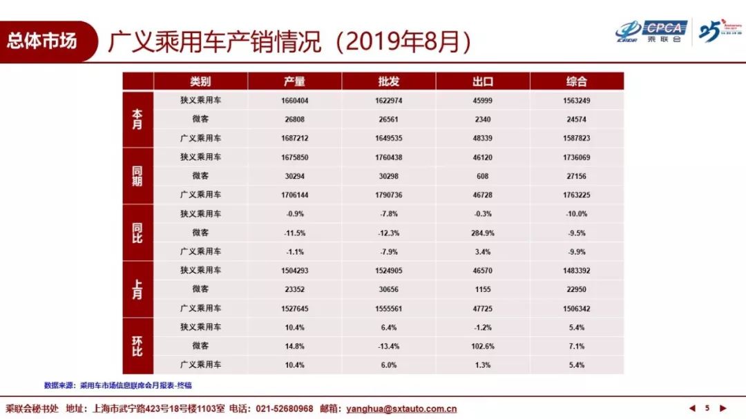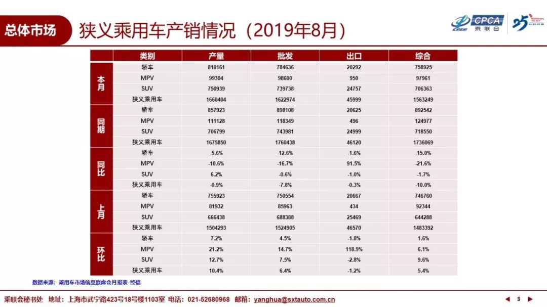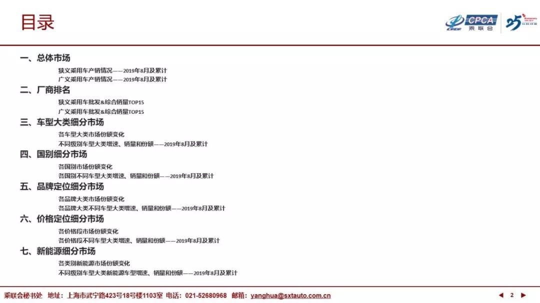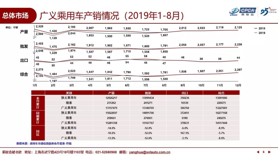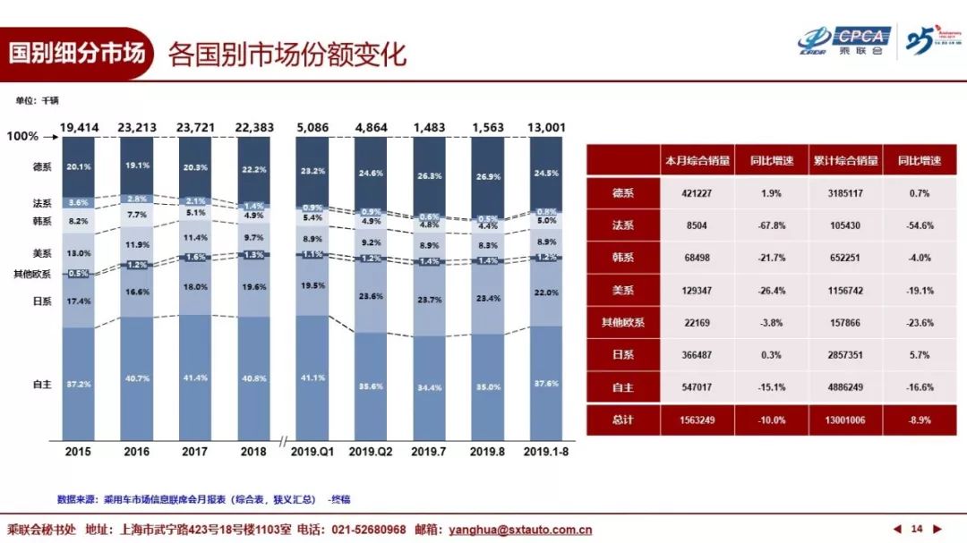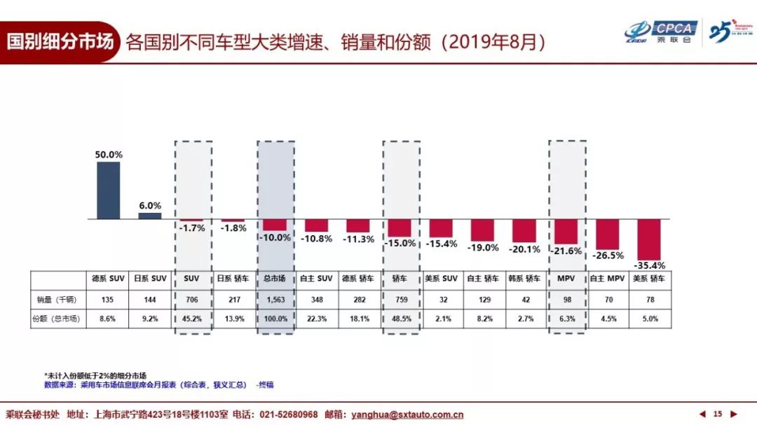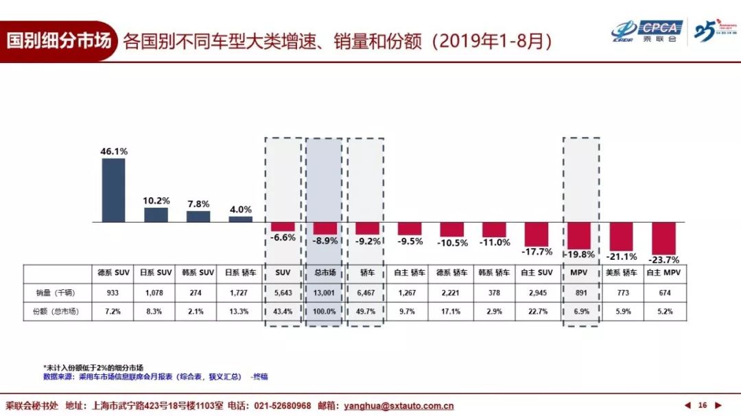 各国别不同车型大类增速、销量和份额——2019年8月及累计