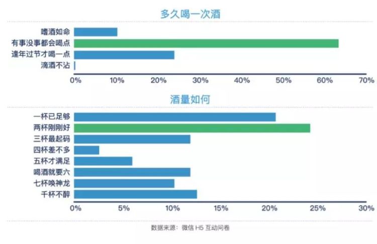 随着洋酒文化教育的不断深入,越来越多的人们能够了解洋酒、接受洋酒、饮用洋酒,65%的受访者表示自己会“有事没事喝一点”。但同时,他们也喝得很节制,控制在“三杯以内”的人达到了57%。