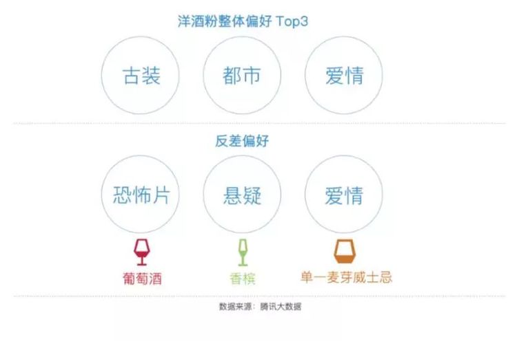 葡萄酒人群偏爱恐怖片,单一麦芽人群爱看言情剧。干邑和香槟消费者在纪录片里观看诗与远方,尤其是文化和自然纪录片。而混合麦芽威士忌爱好者和烈酒的爱好者更喜欢观看体育比赛视频,热爱NBA和英超。