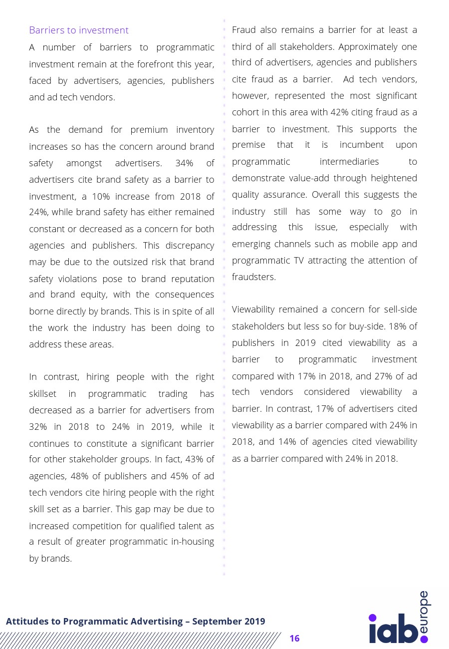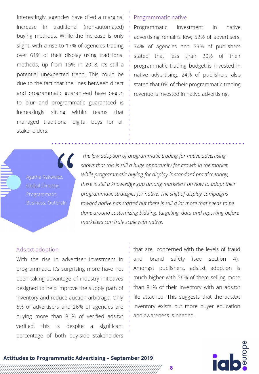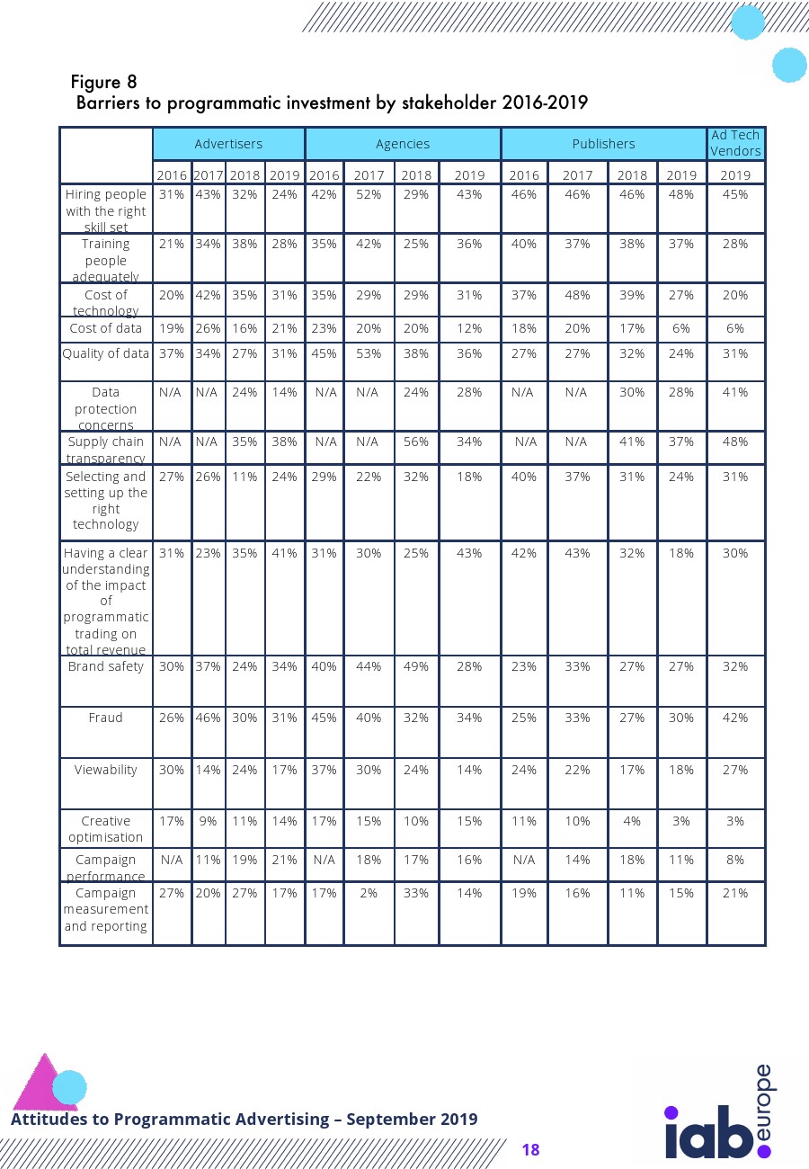 2019年IAB欧洲对广告程序化购买的态度调查突出了以下几点: