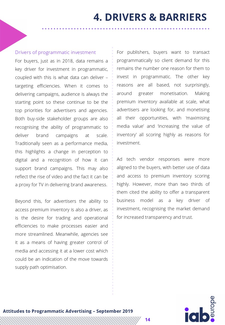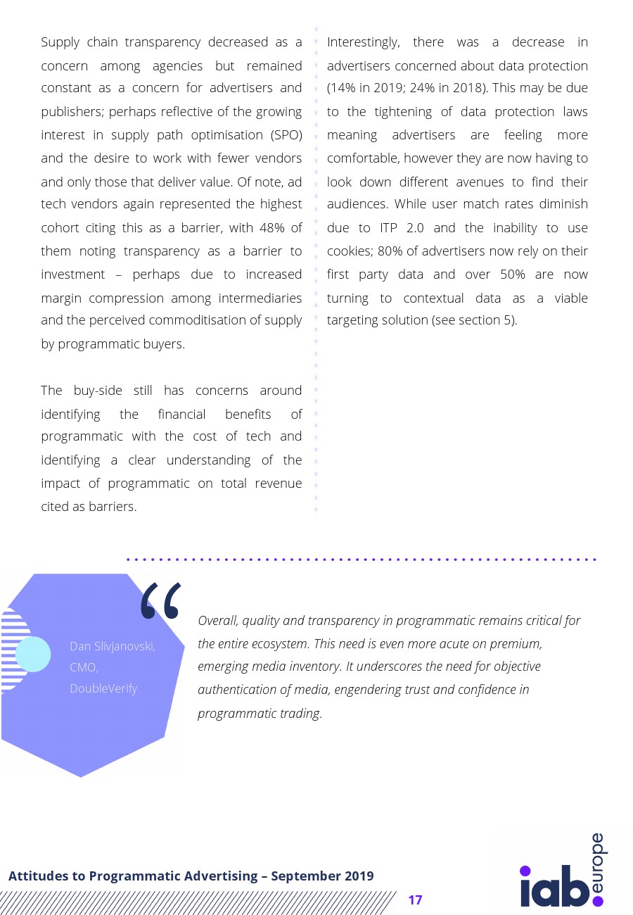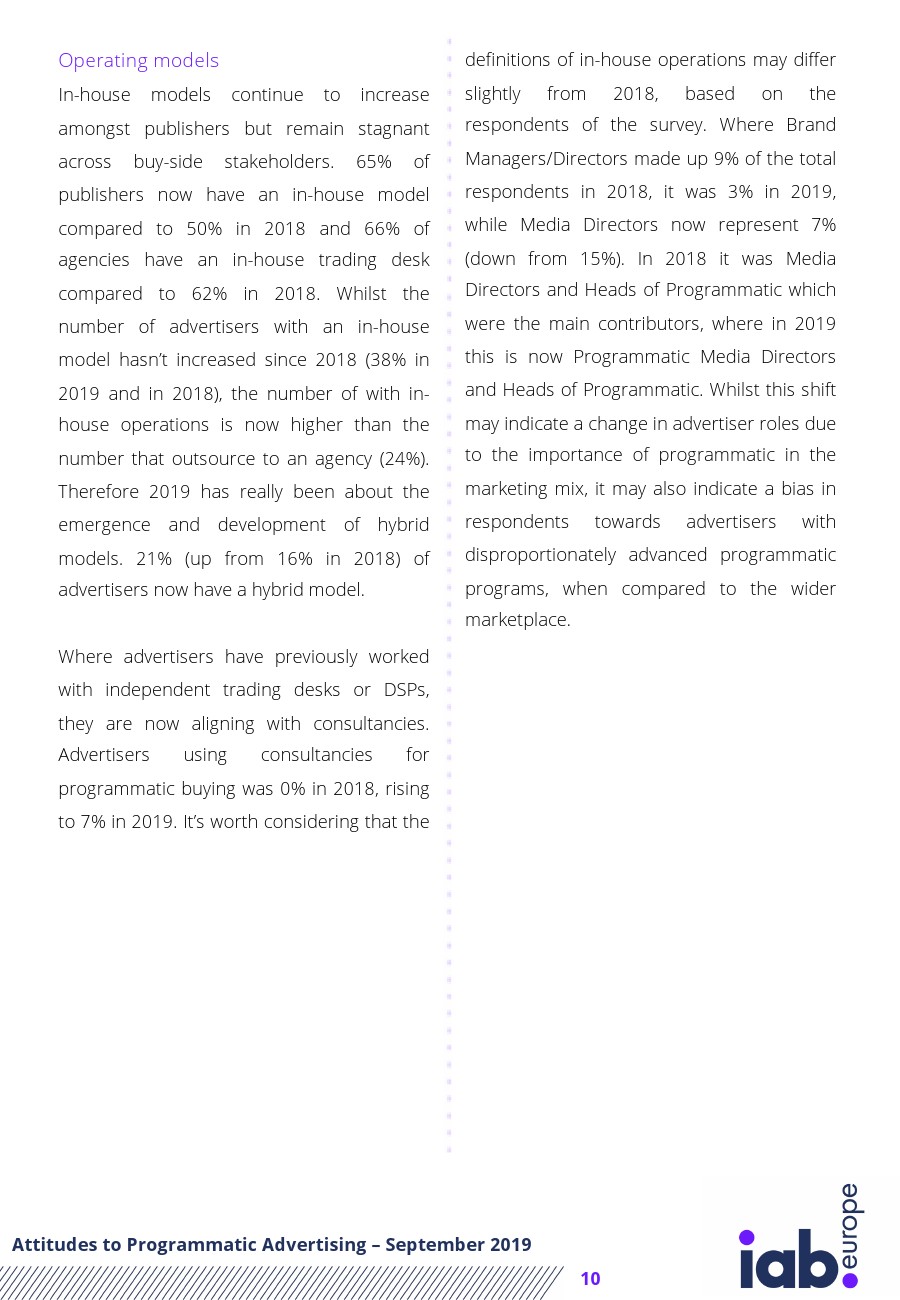 2019年IAB欧洲对广告程序化购买的态度调查突出了以下几点: