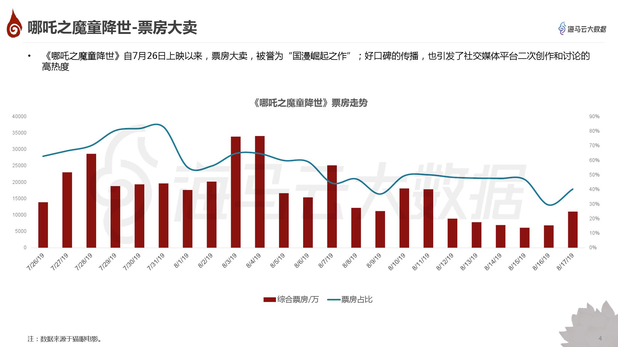 电影《哪吒之魔童降世》于2019年7月26日上映,影片一经上映便好评如潮,票房爆棚,连创多个纪录。抖音用户也纷纷发布相关视频、发表相关评论、tag相关话题,特效新玩法也随之风靡,引发哪吒在社交平台上持续高温。