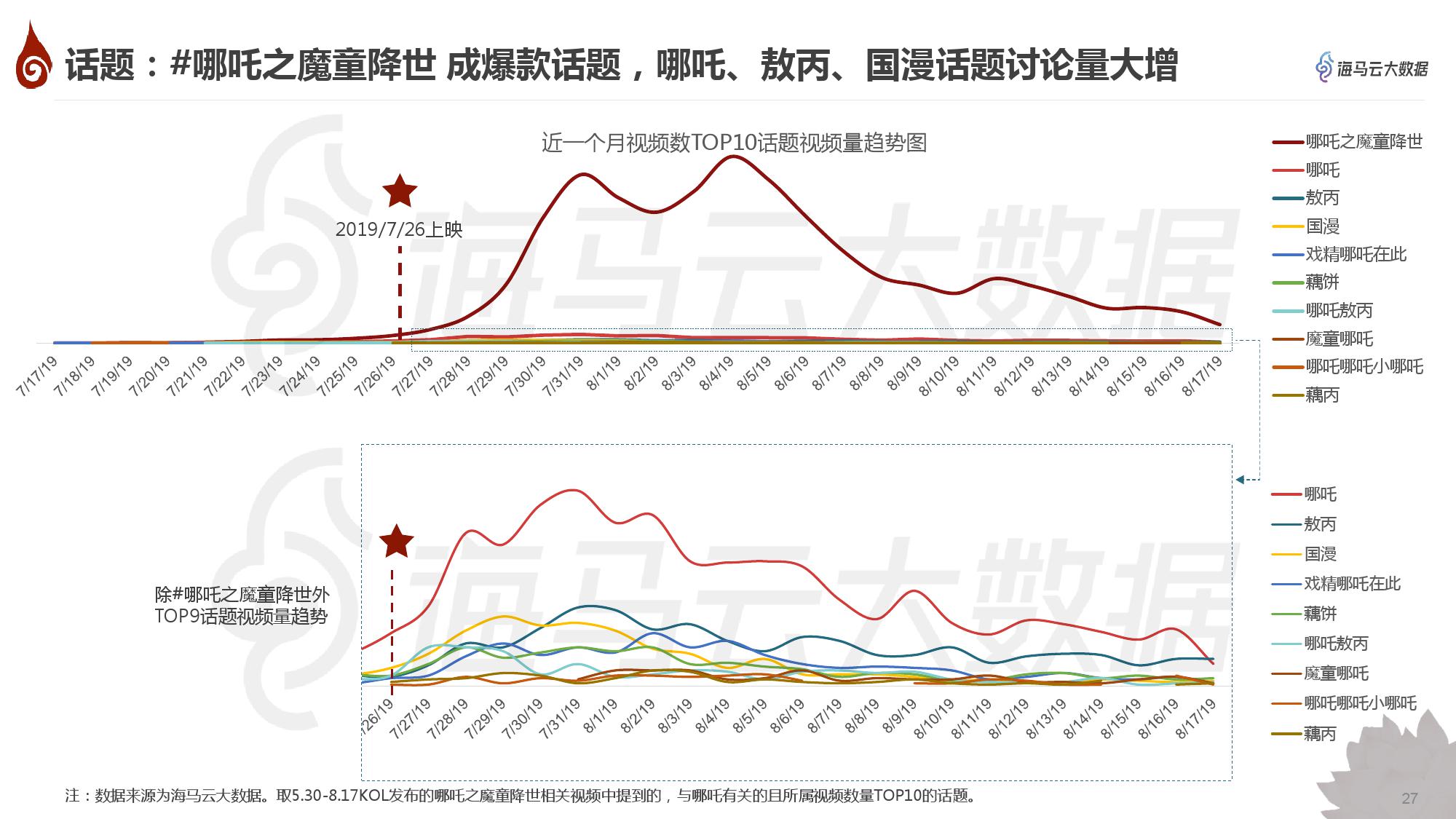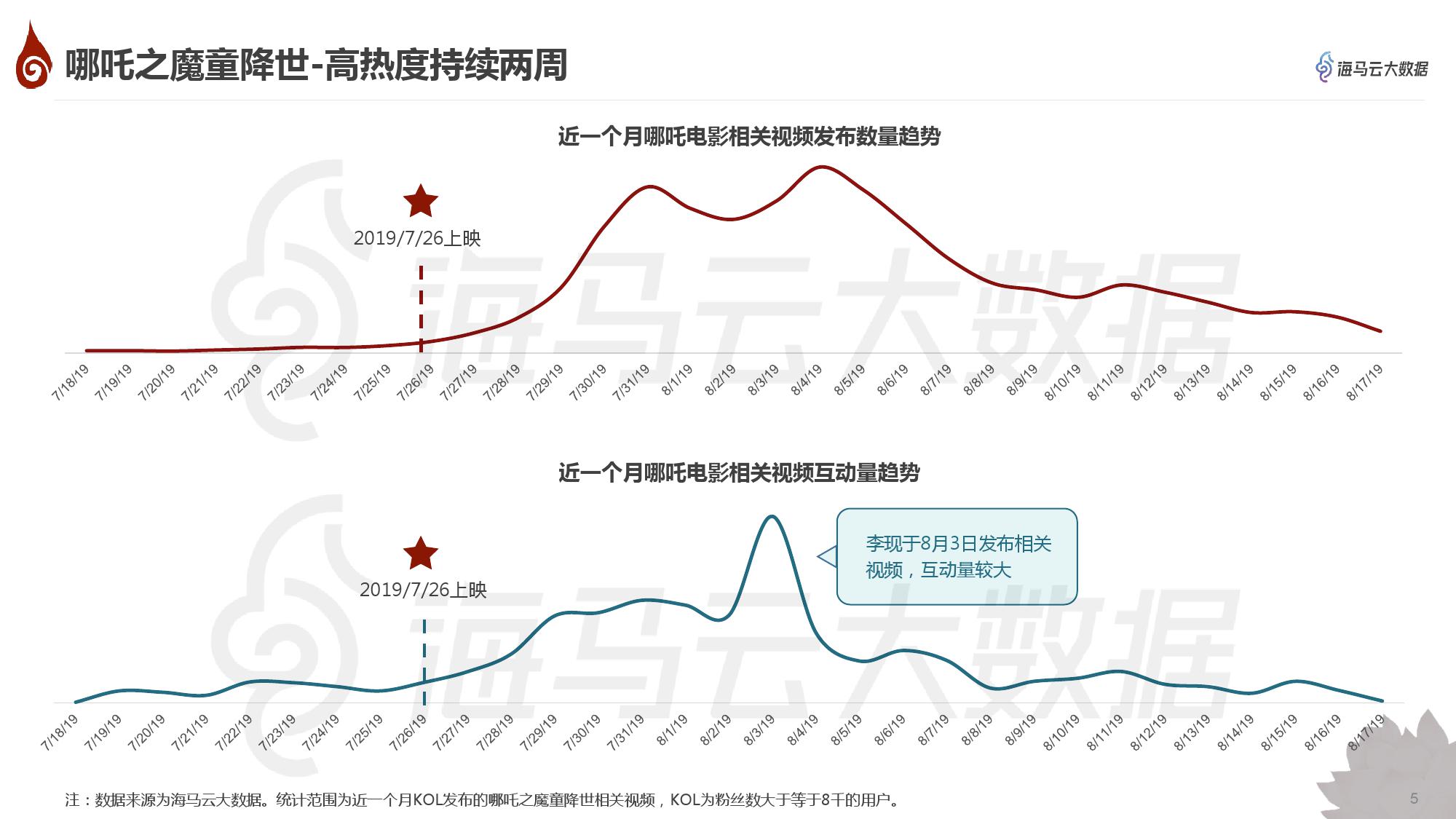 • 《哪吒之魔童降世》上映三周在抖音上引发的热度走势,及上映前后KOL对热度的传播与电影的宣发