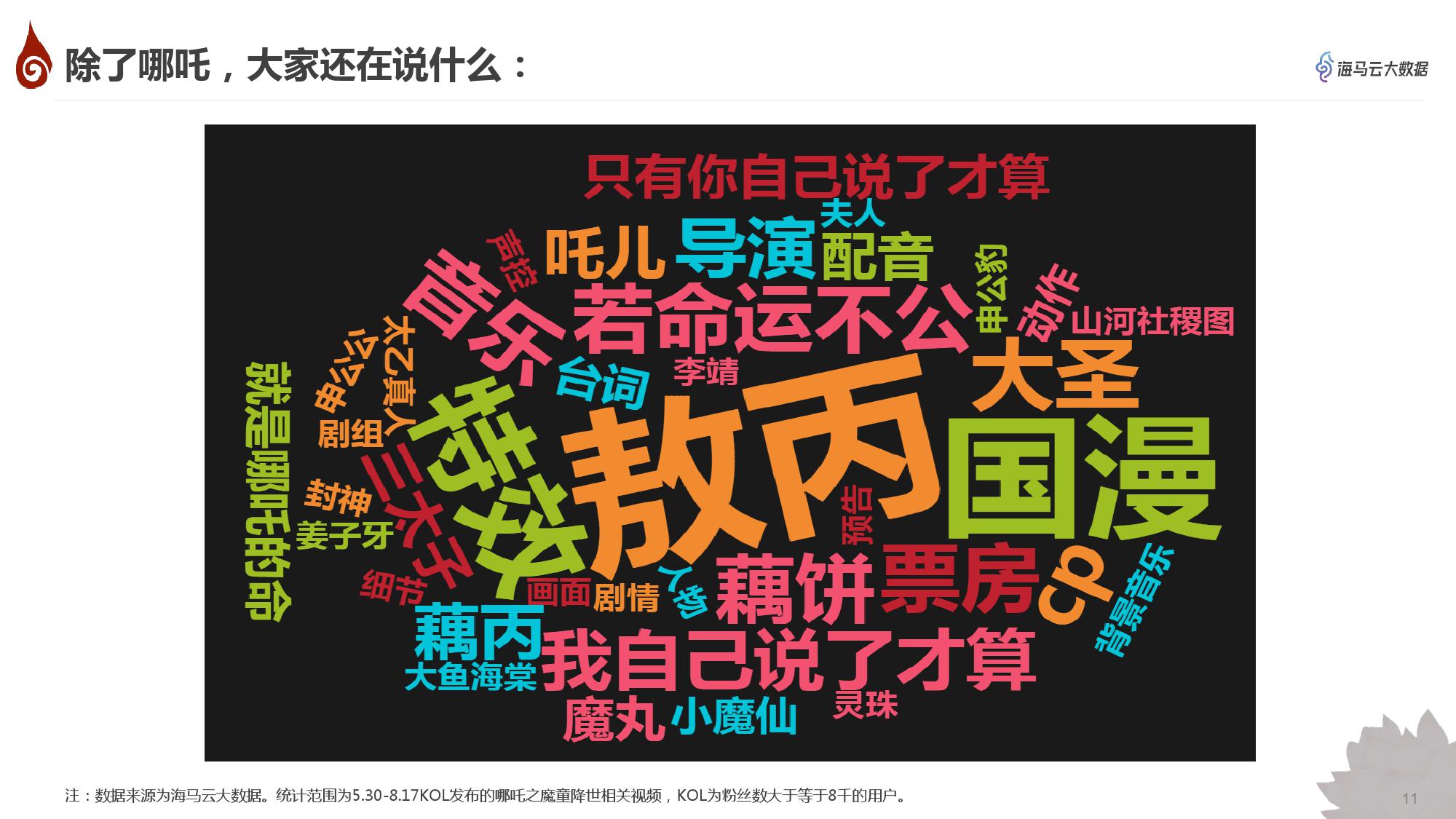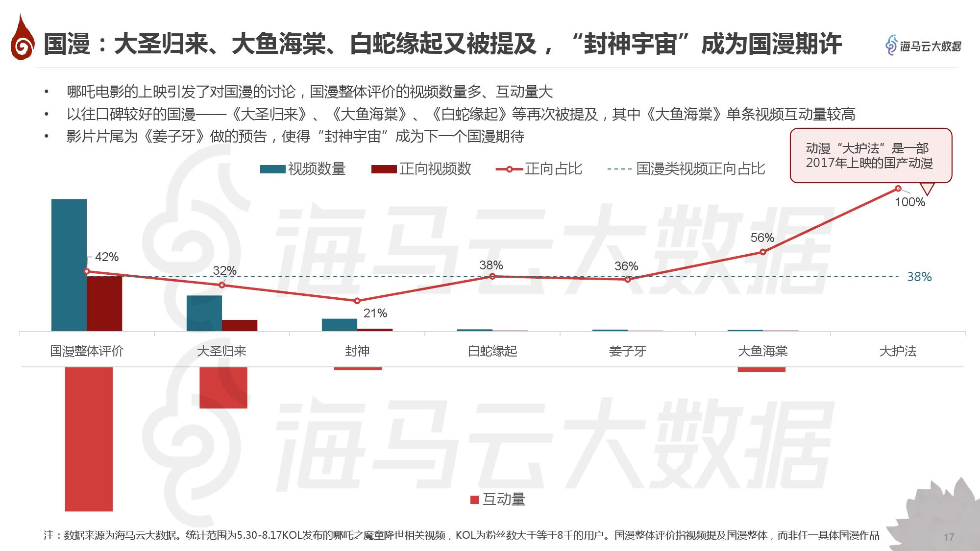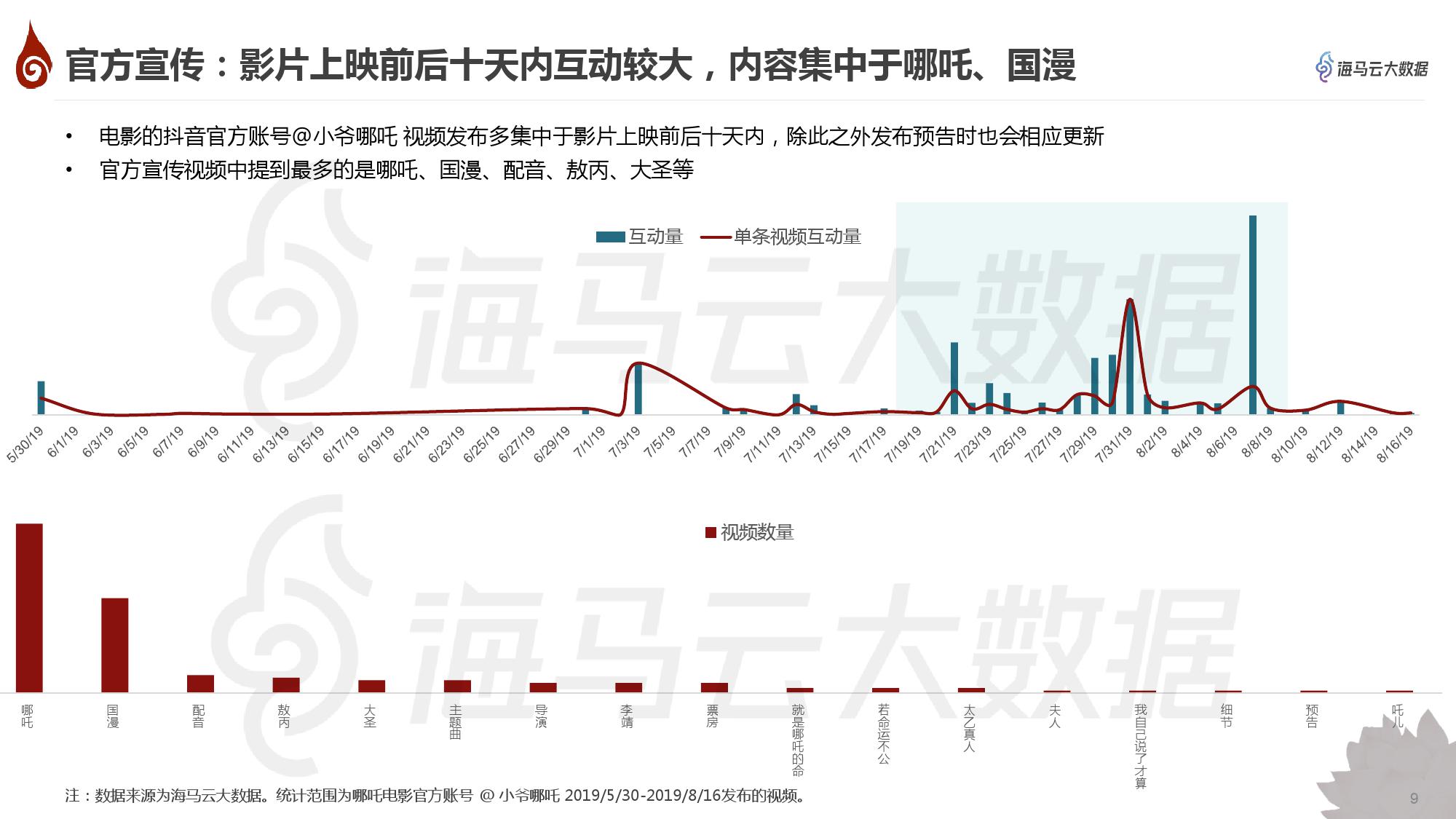 • 抖音对《哪吒之魔童降世》的内容创作主要集中在7个方面,其中人物、台词、国漫最受关注;影片效果备受好评,国漫被夸崛起