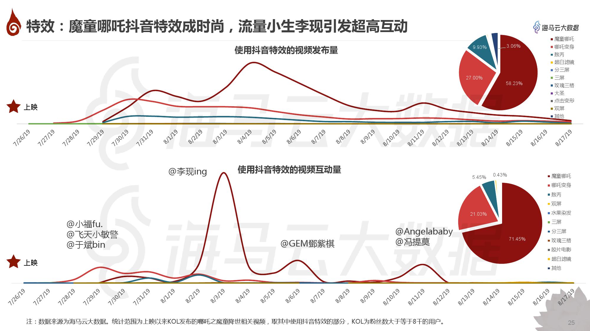 • 哪吒电影的高热度也催生了新玩法,魔童哪吒特效视频成为新时尚,流量小生李现哪吒视频引发高互动