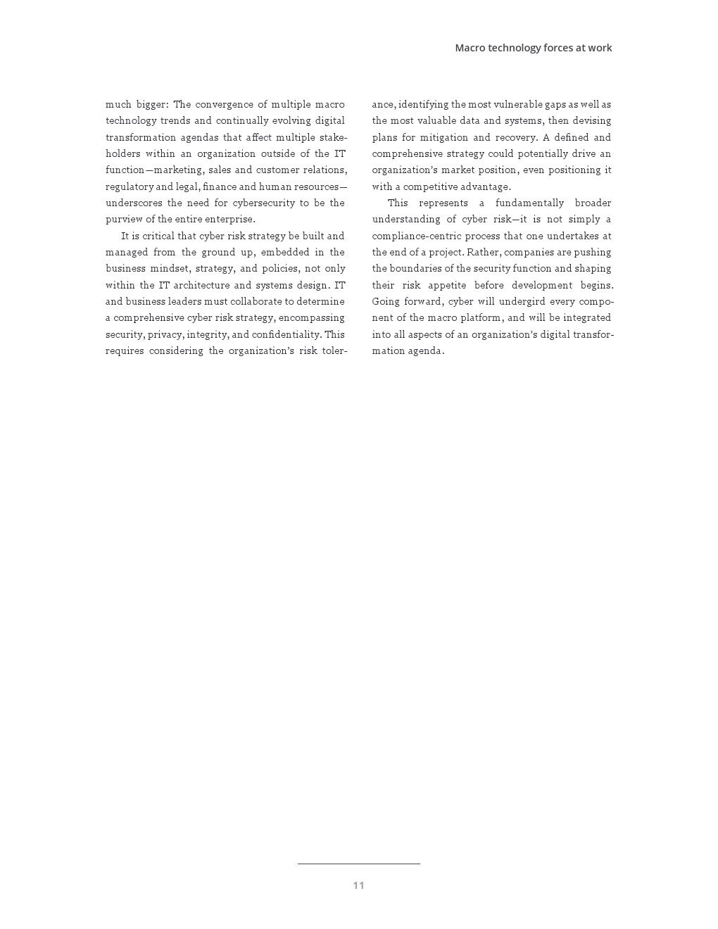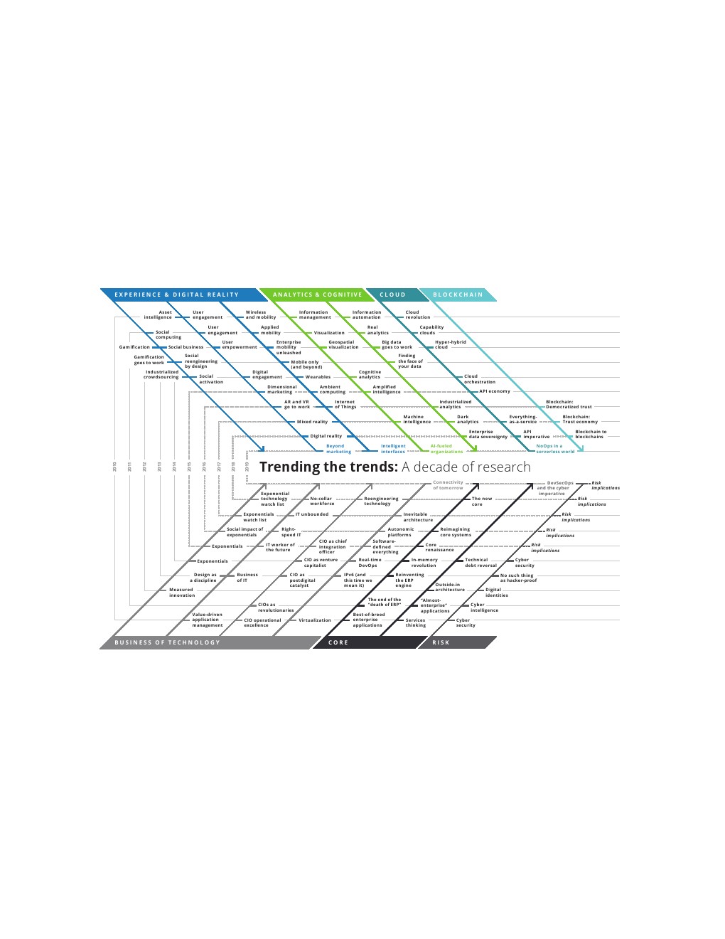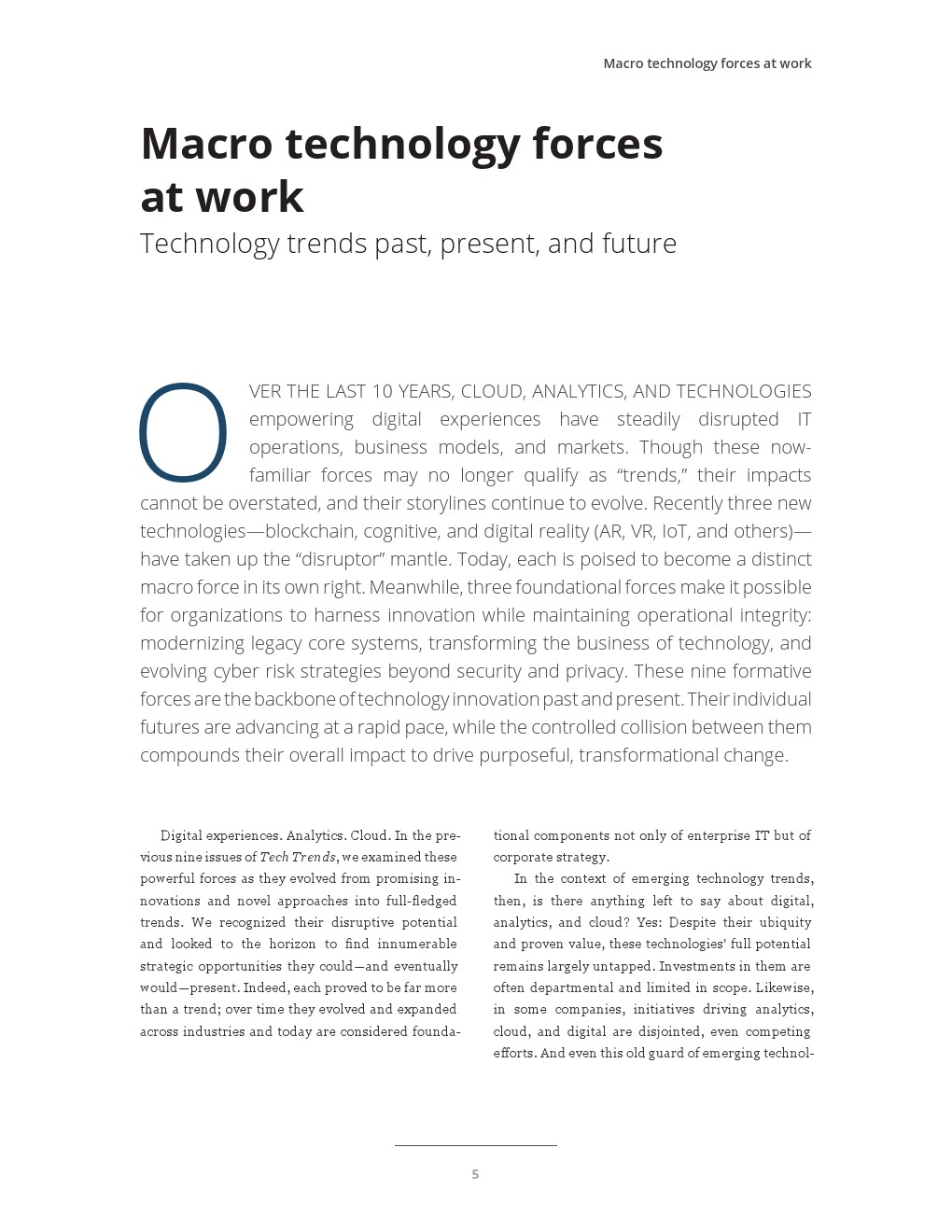 过去十年,云计算、分析和技术增强了数字体验,这颠覆了IT运营、商业模式和整个市场。尽管这些熟悉的趋势已经不再符合“趋势”, 但他们的影响仍在继续。最近的三大技术,区块链、识别和数字现实(AR,VR,IoT等)已经成了新的颠覆者。现在,这些基础力量让企业在保持运营完整性的同时利用创新:对传统核心系统进行现代化改造,转变技术业务,以及超越安全性和隐私性的不断发展的网络风险策略。