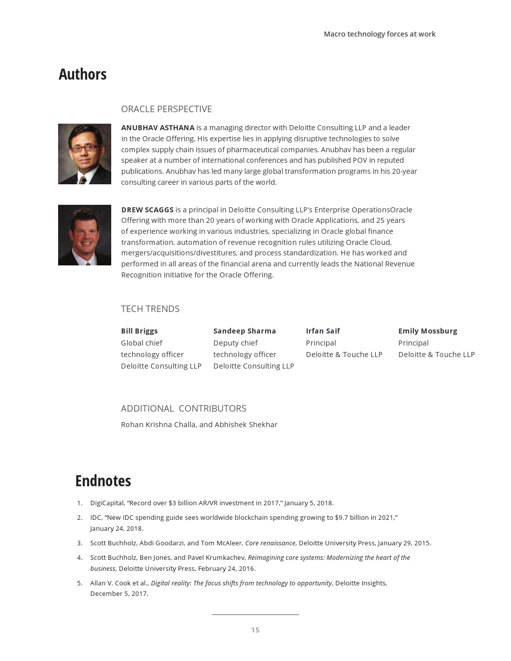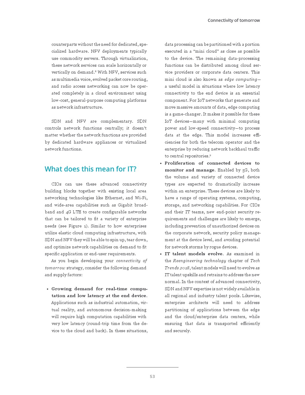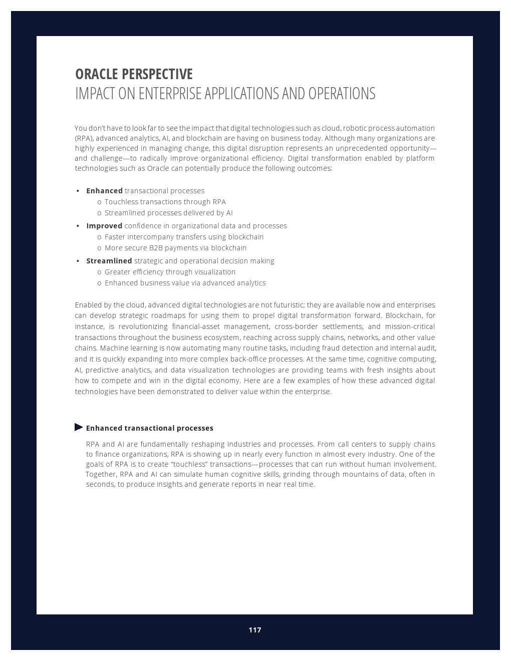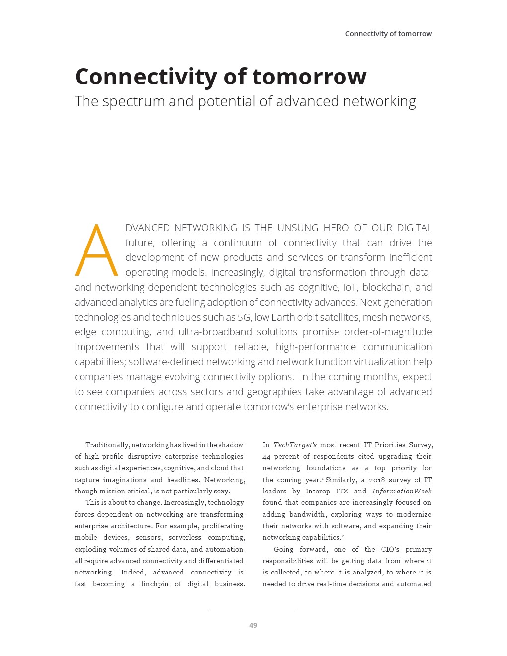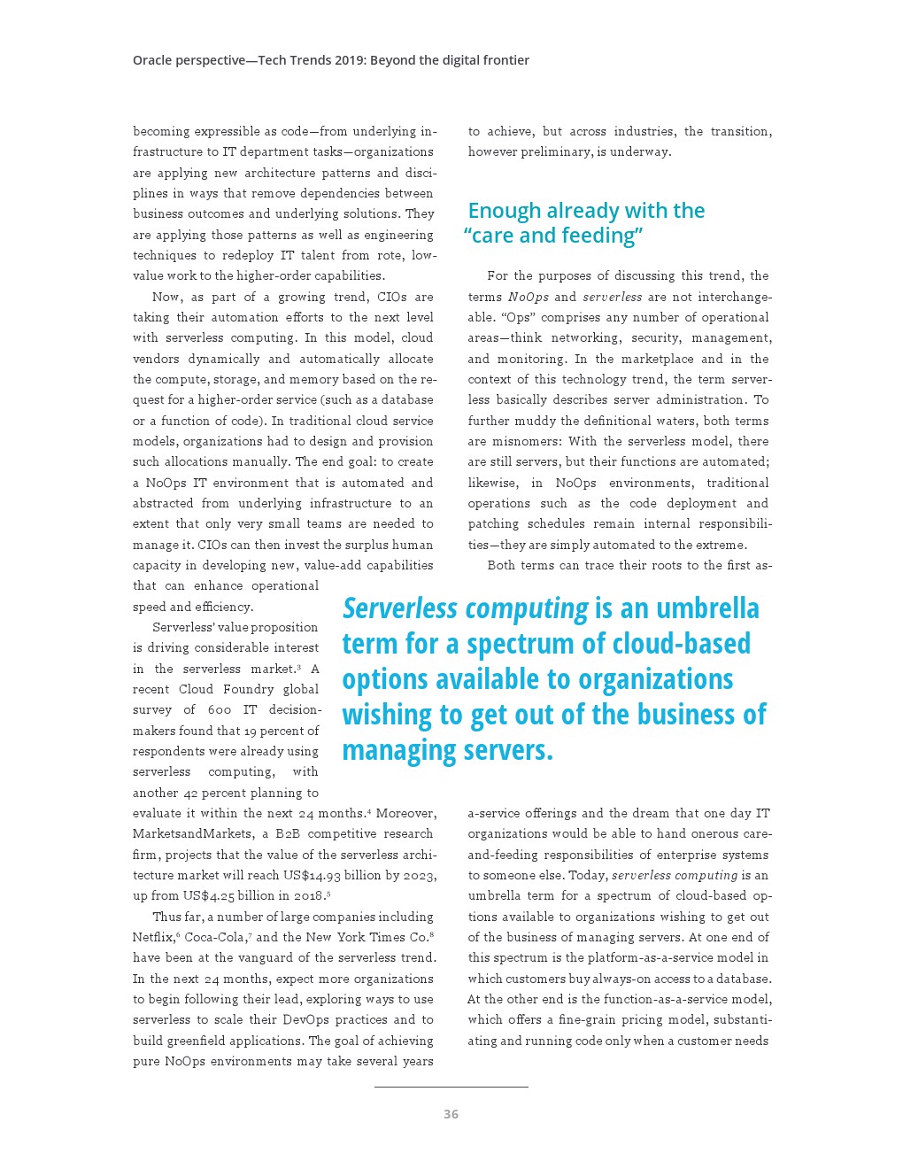 德勤在报告中分析了人工智能、NoOps(No Operations,即软件环境可以完全自动化,不需要运营团队来管理它)、先进网络、智能界面等前沿技术对企业的影响。