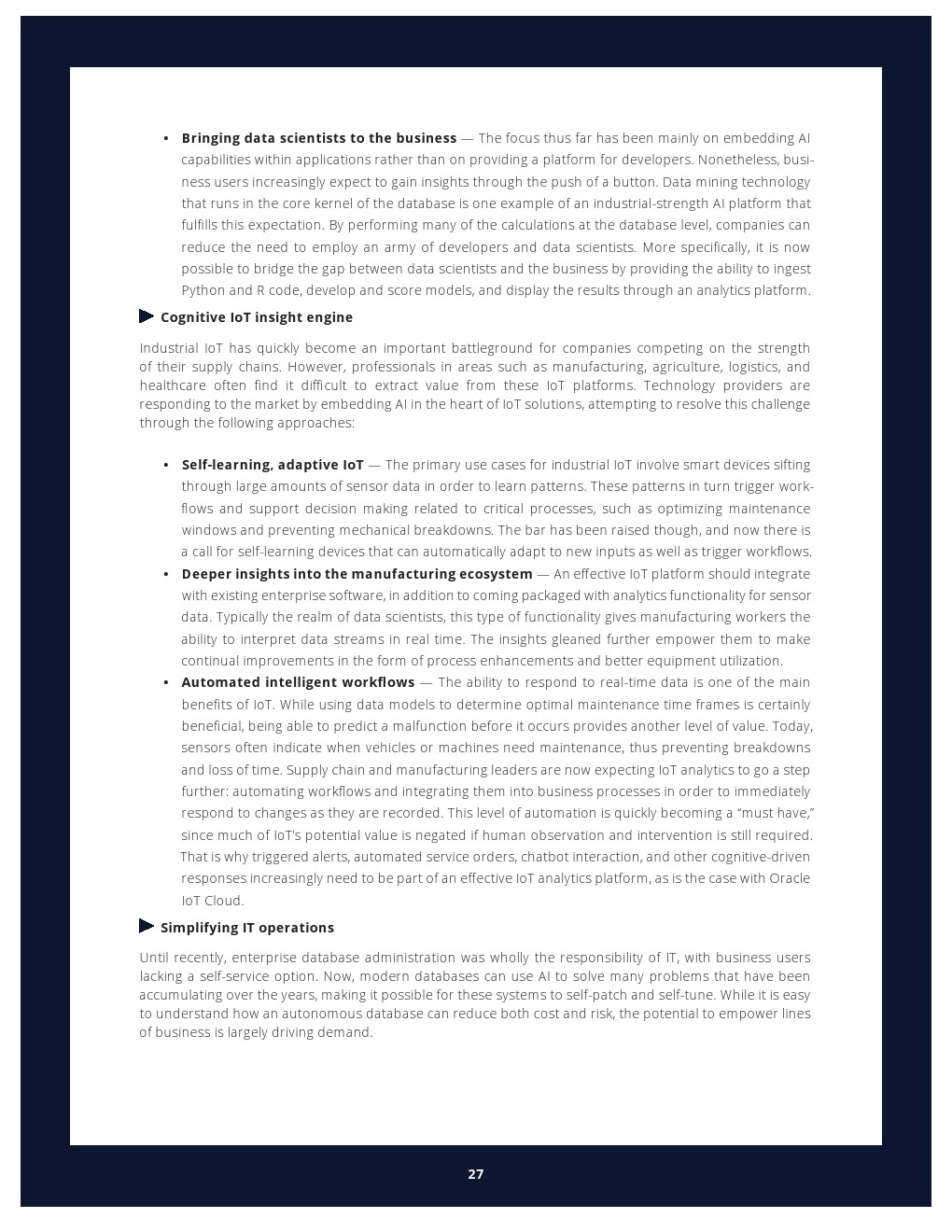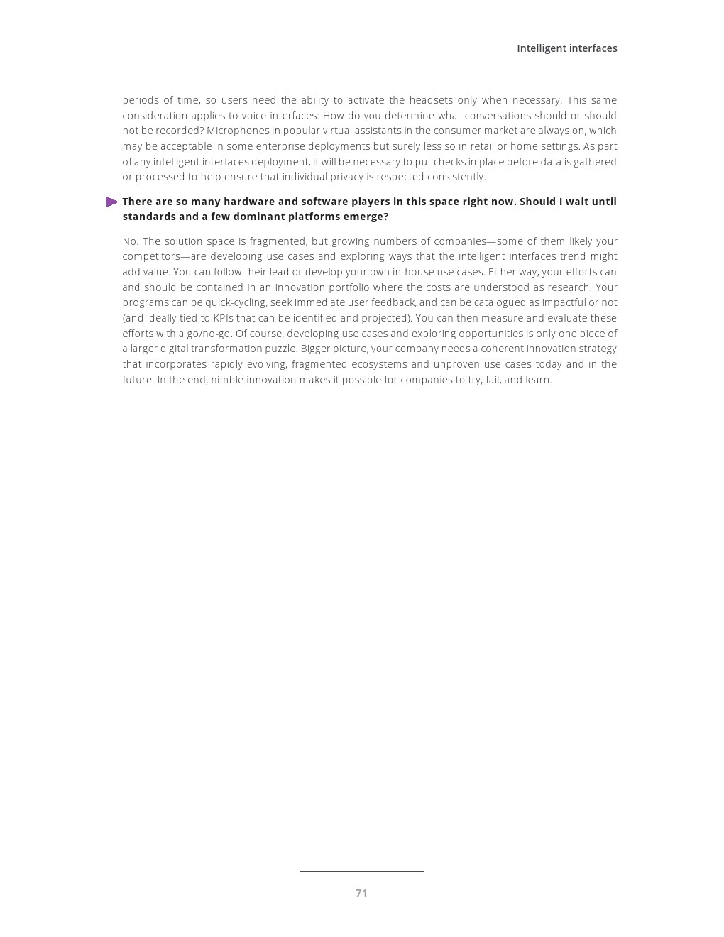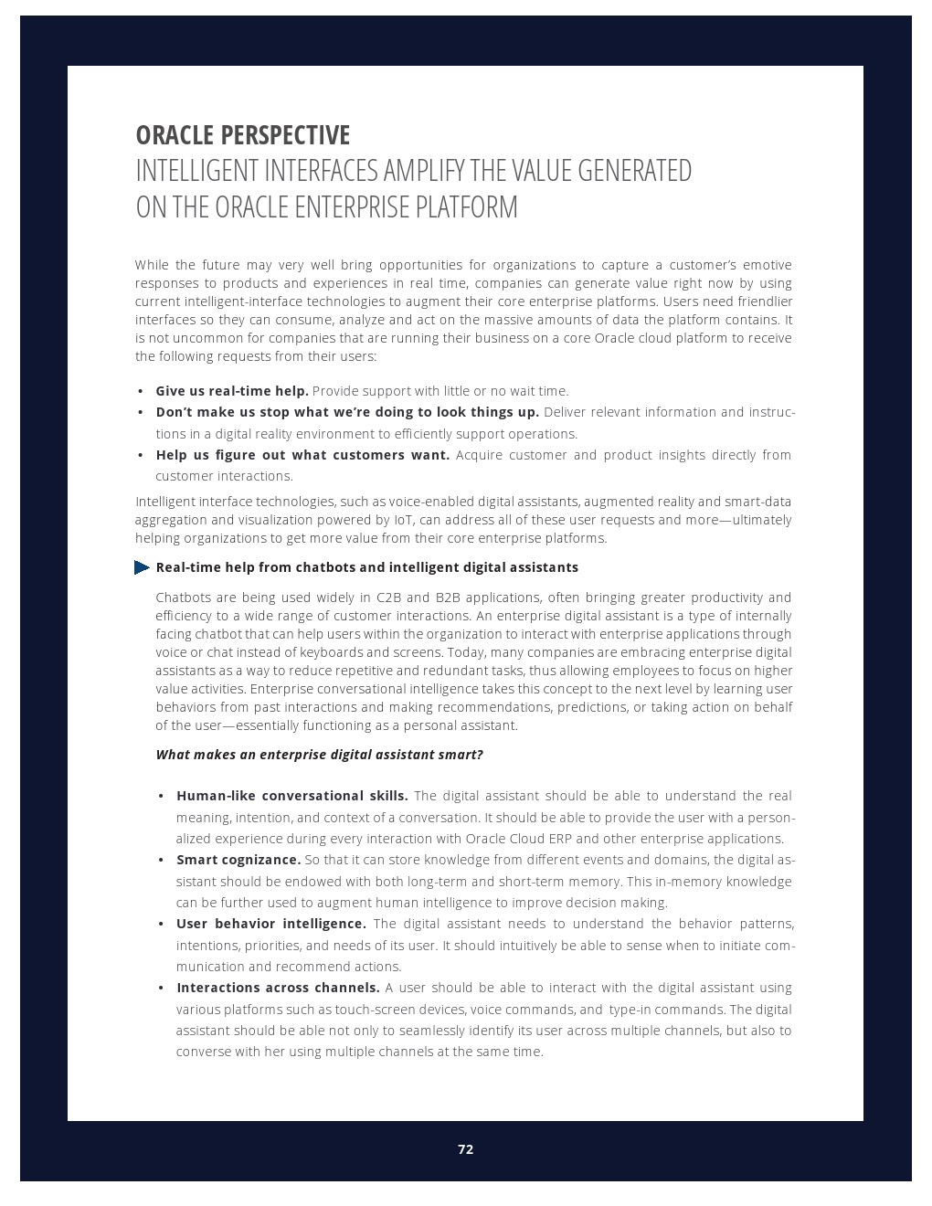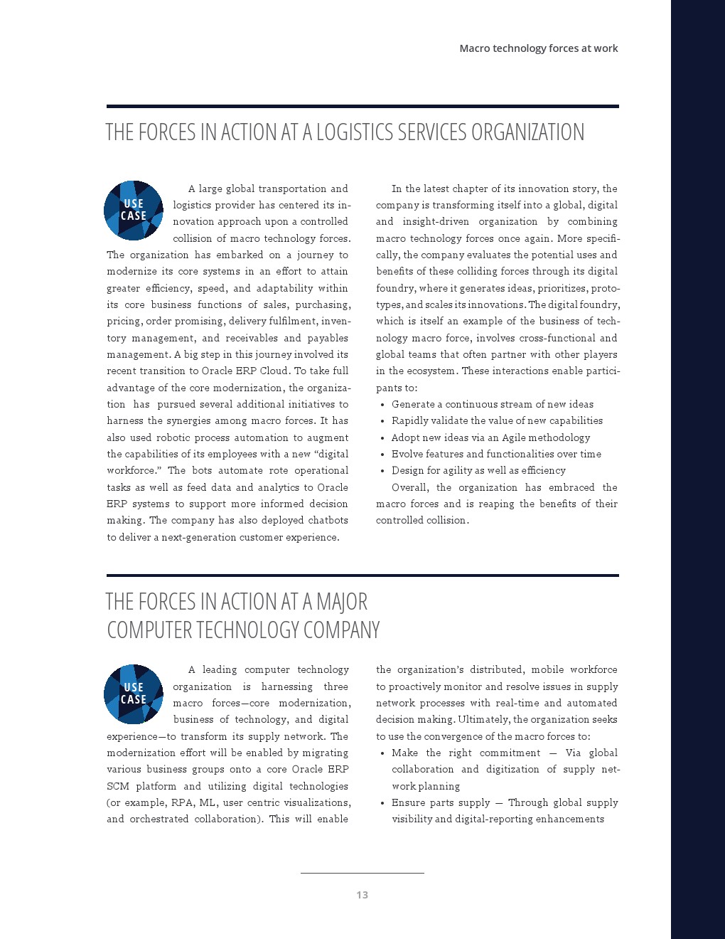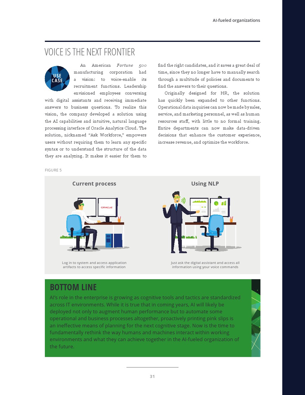 德勤在报告中分析了人工智能、NoOps(No Operations,即软件环境可以完全自动化,不需要运营团队来管理它)、先进网络、智能界面等前沿技术对企业的影响。
