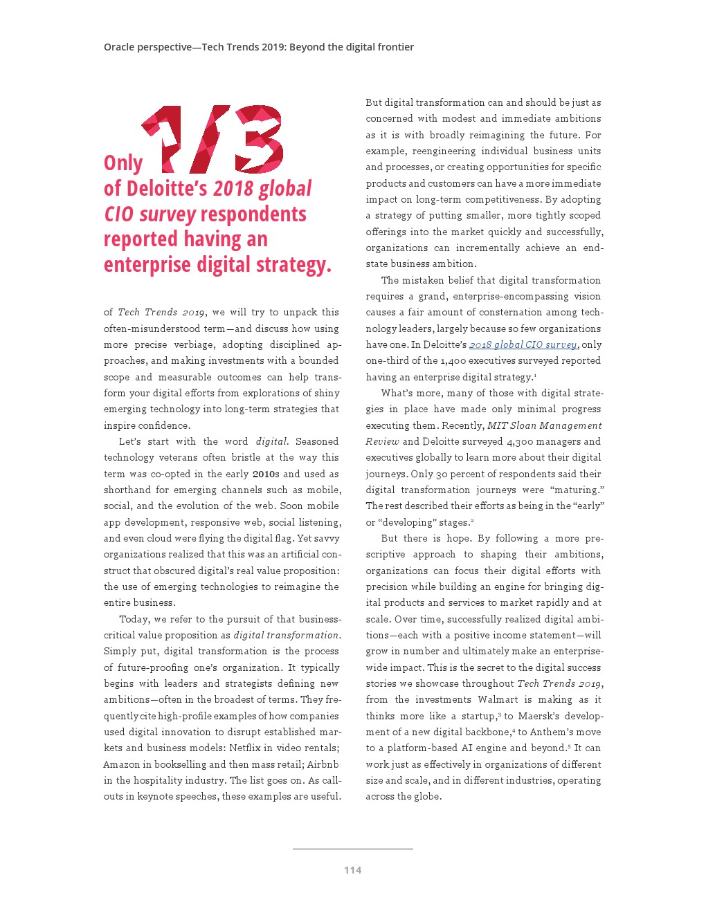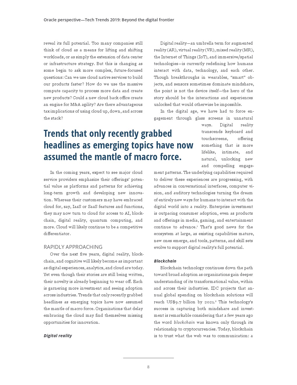 德勤发布了新报告“科技趋势2019——超越数字前沿”。