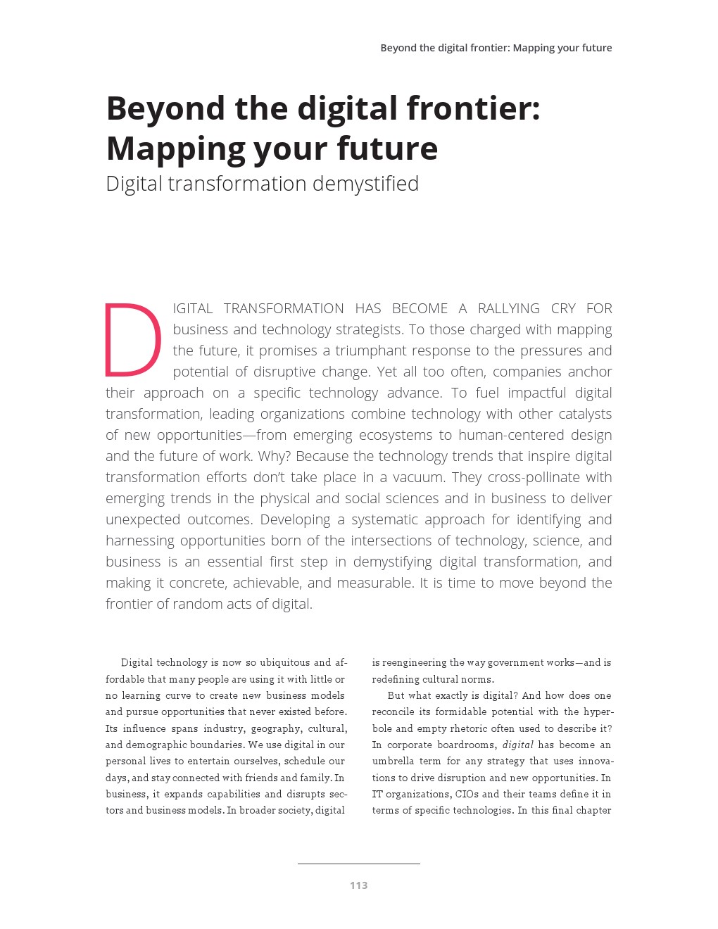 十年前,许多公司可以通过拥抱已经在进行的创新和趋势来获得竞争优势。如今,这种反应性方法已不够。为了保持领先地位,企业必须有条不紊地工作,以感知新的创新和可能性,超越自己对未来的野心,并超越数字前沿。