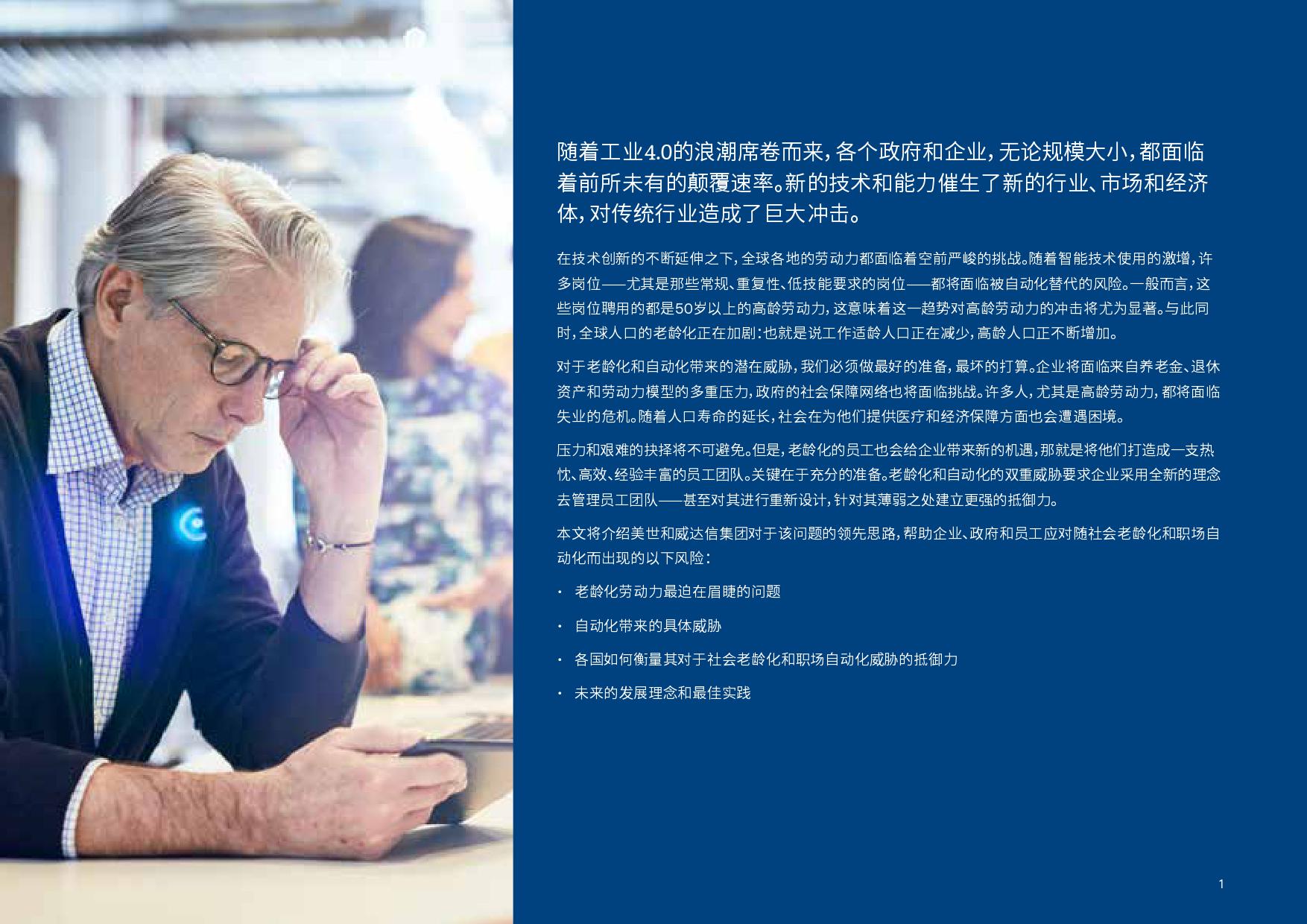 如今,全球各地的政府和企业都在经历一个颠覆期。技术的进步正逐渐使低技能要求的常规岗位面临被自动化取代的危险,而这类岗位聘用的往往是50岁以上的高龄劳动力。
