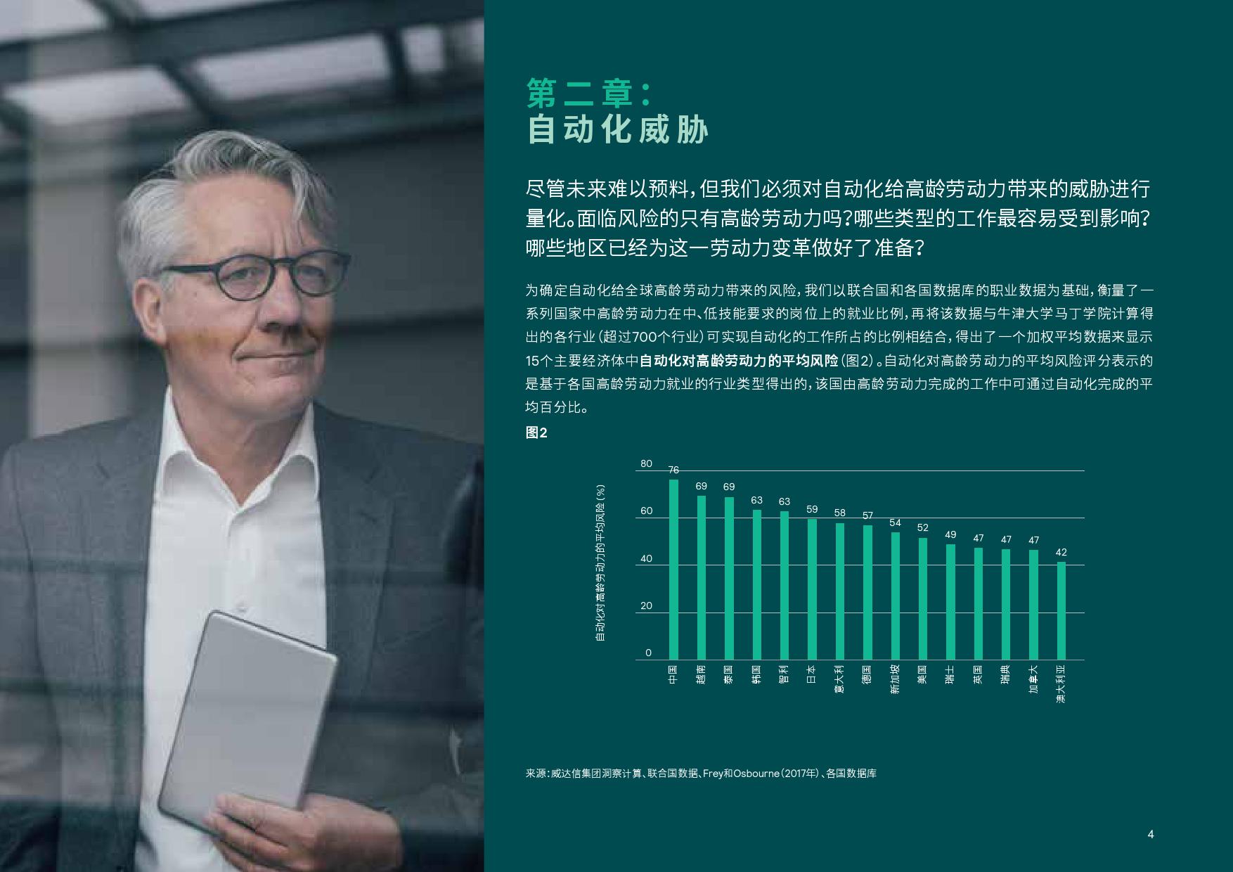 - 在中国高龄劳动力(50岁以上)所做的工作中,平均有超过四分之三(76%)可以通过自动化来完成。