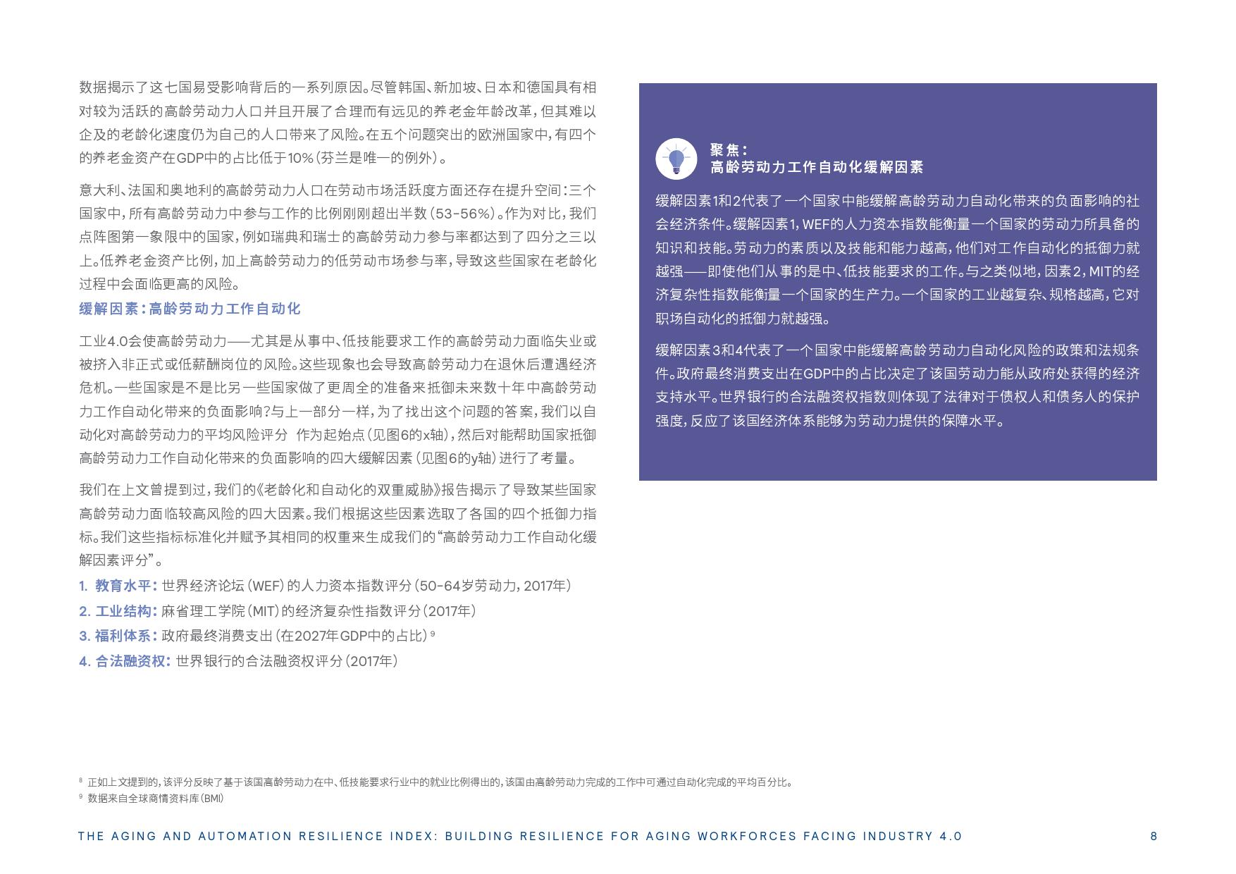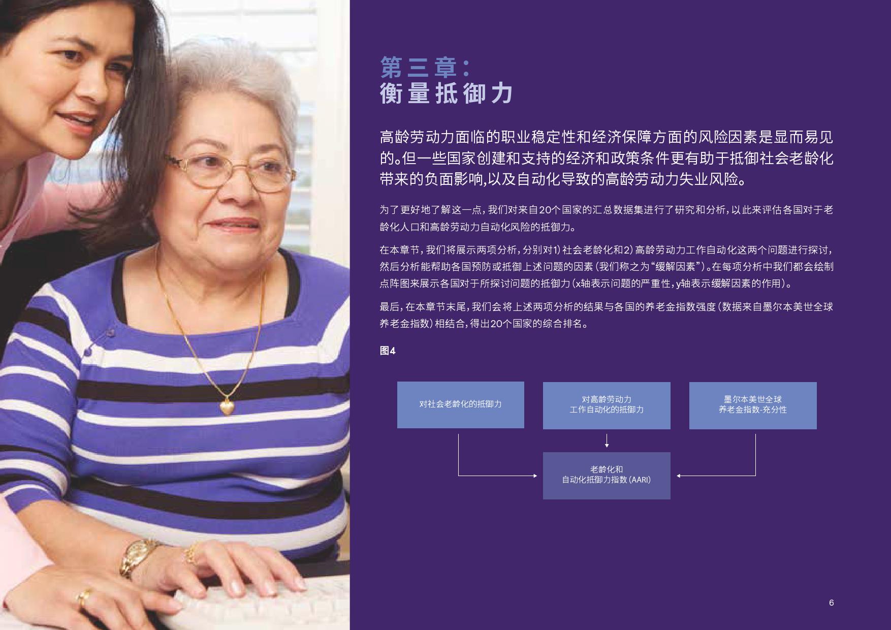 老龄化和自动化抵御力指数是分析一个国家应对老龄化和高龄劳动力工作自动化挑战的缓解因素,以及当地退休体系的强度,从而评估出该国对于管理老龄化和自动化的准备充分程度。