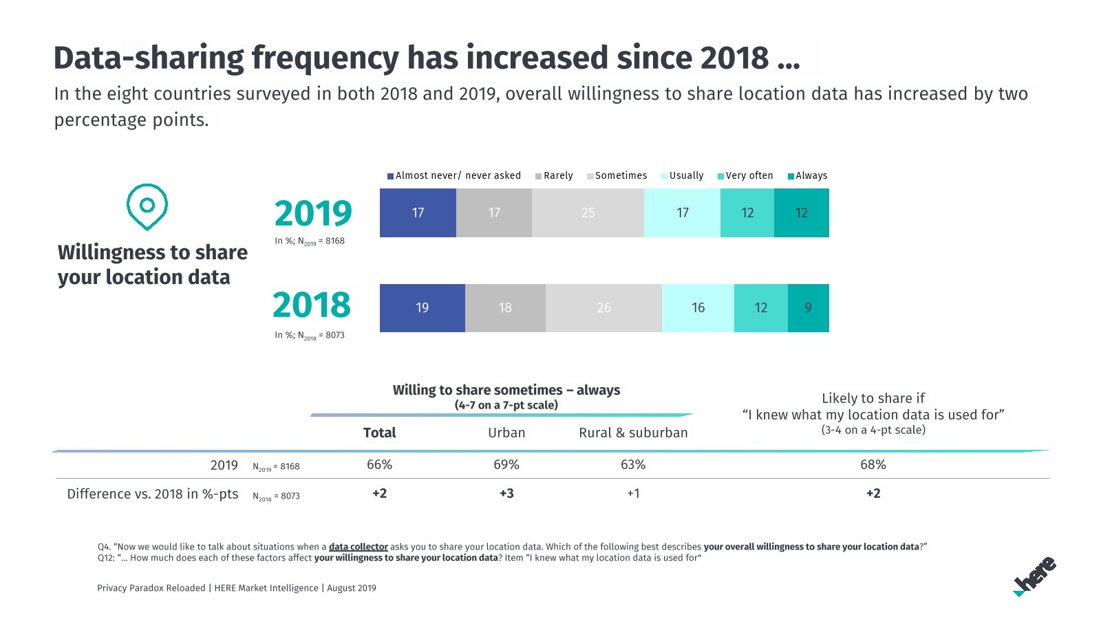 此外,与汽车制造商共享数据的意愿也更高,这可能是联网汽车服务提高的结果。