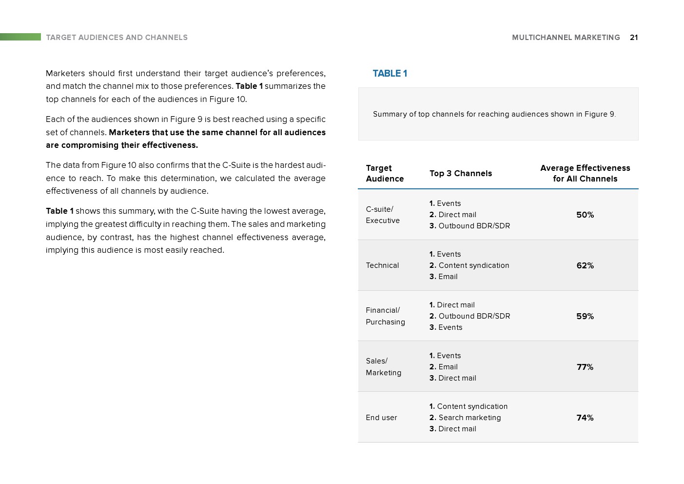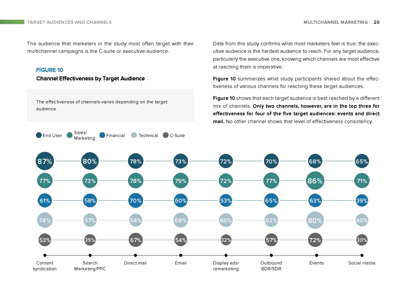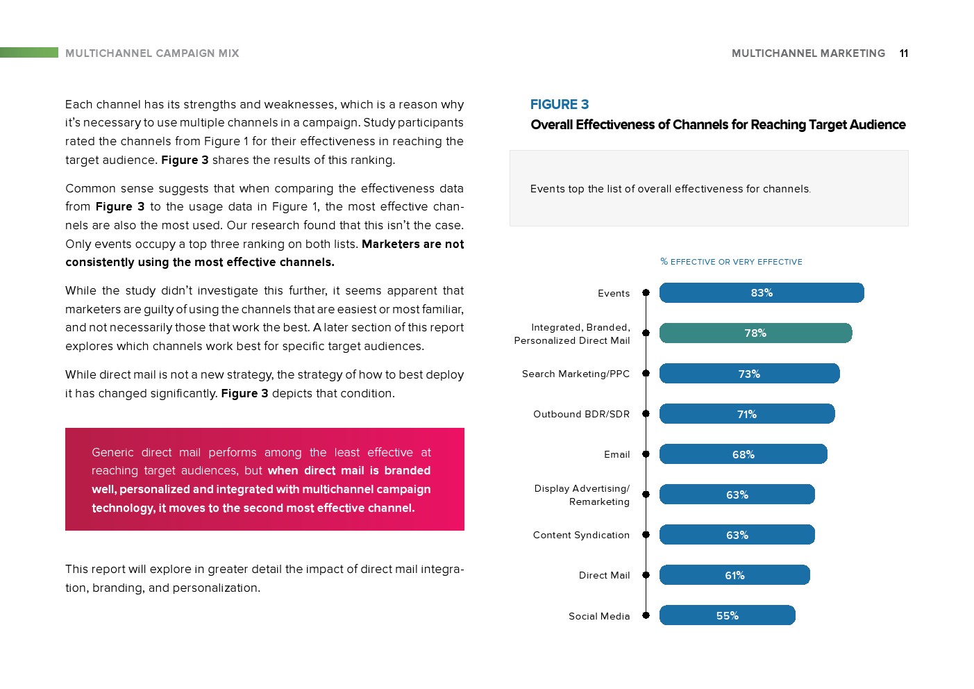 3/5的多渠道营销活动的目标(60%)是高管;2/3的受访者(67%)表示,直邮是接触这些顶级受众的有效渠道,使其成为仅次于事件营销的第二有效的渠道(72%)。