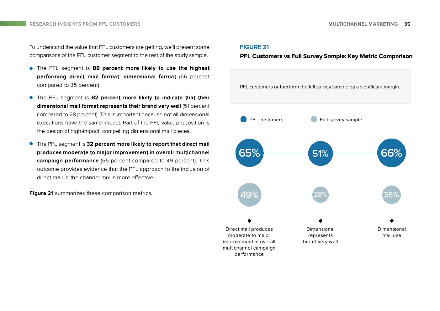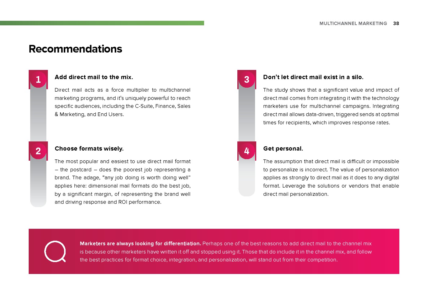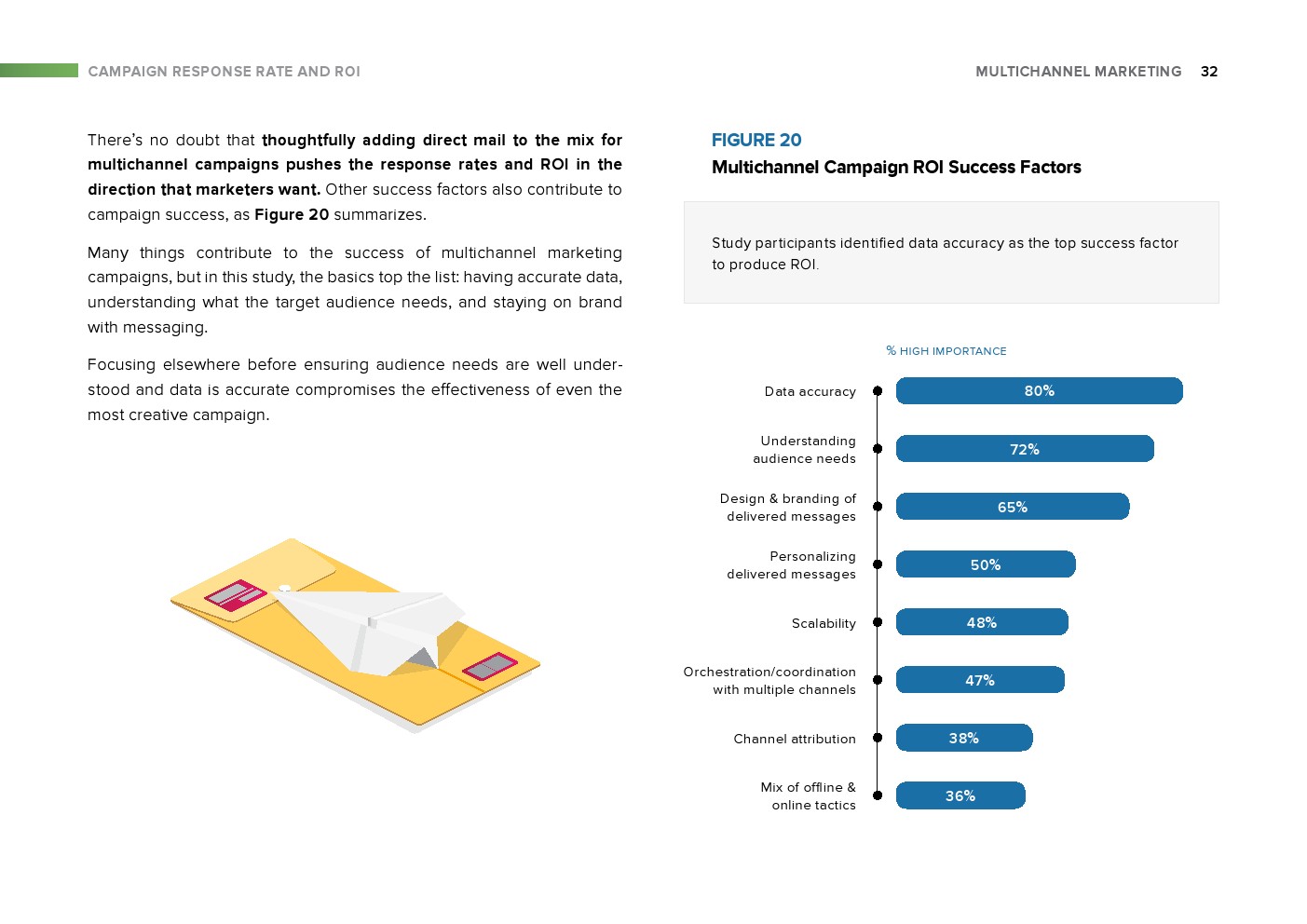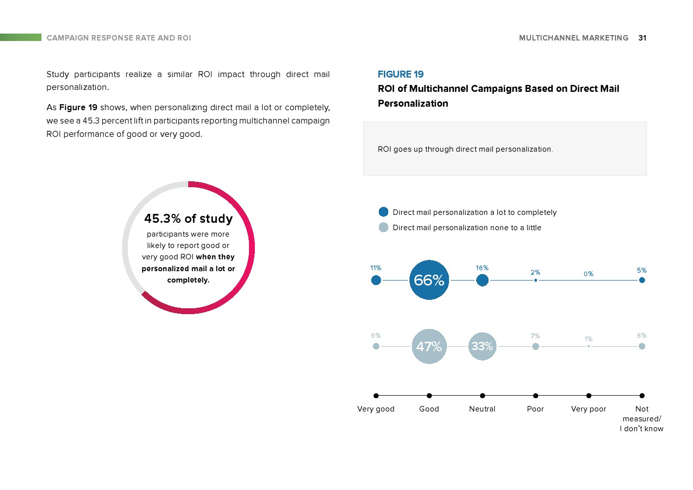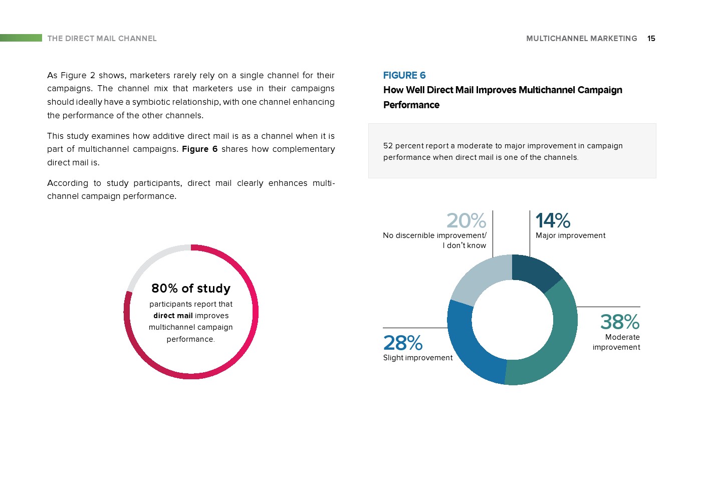 如果在多渠道广告系列中包含直邮,则响应率比不包含直邮的广告系列更高。大约69%的受访者表示,直邮是渠道组合中的一部分时,响应率非常好;相比之下,不使用直邮的广告系列则为63%。