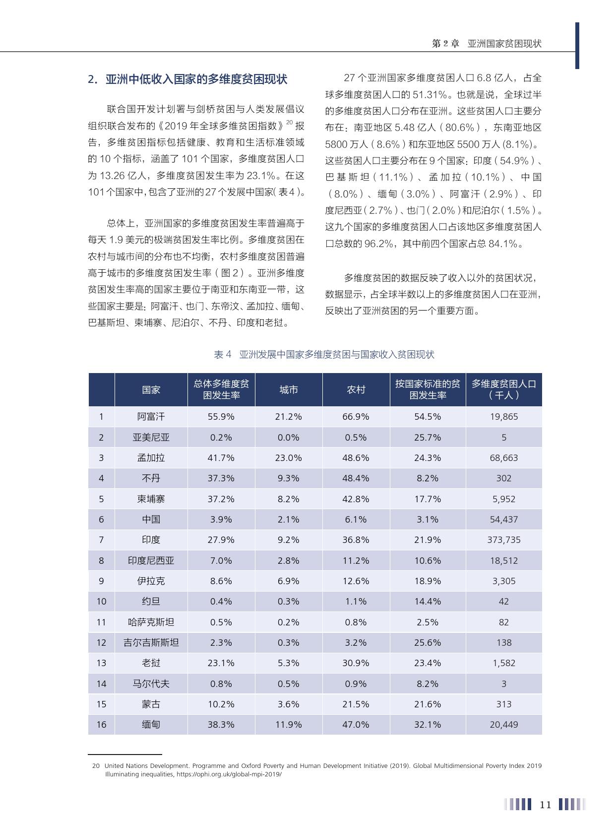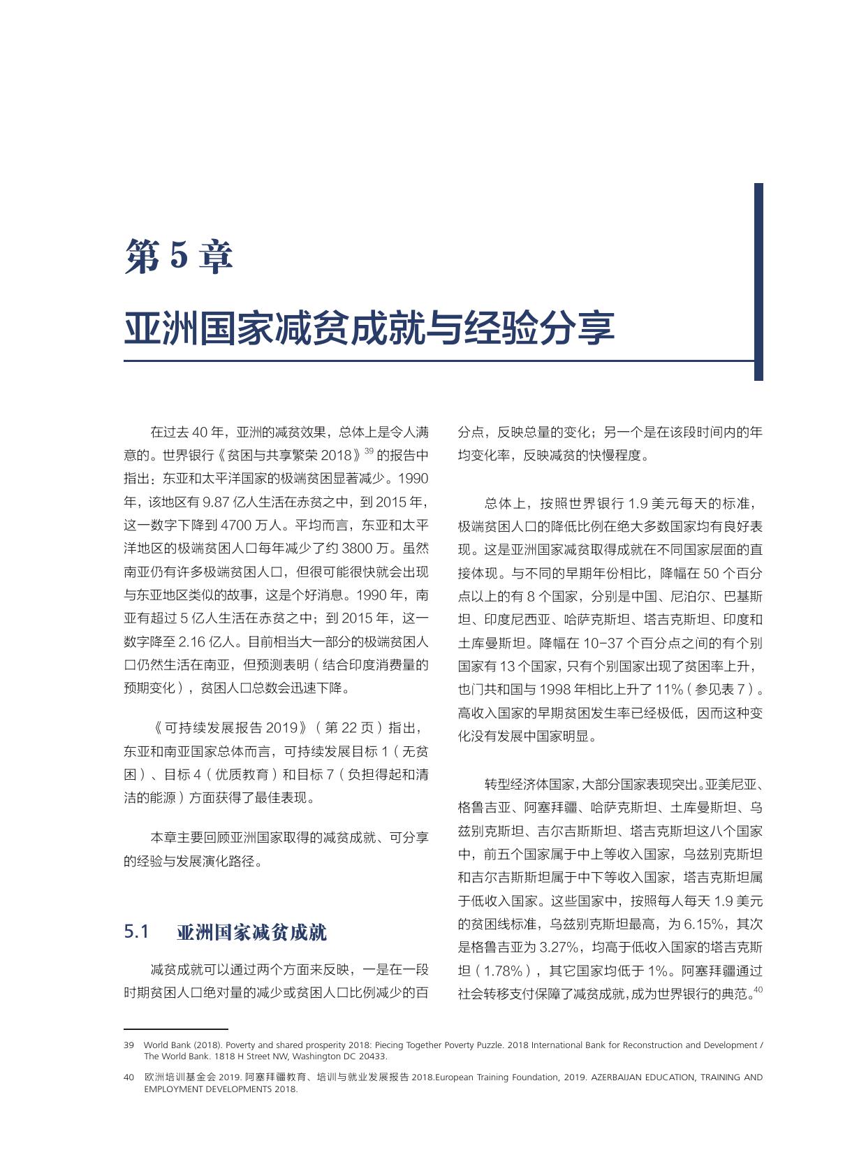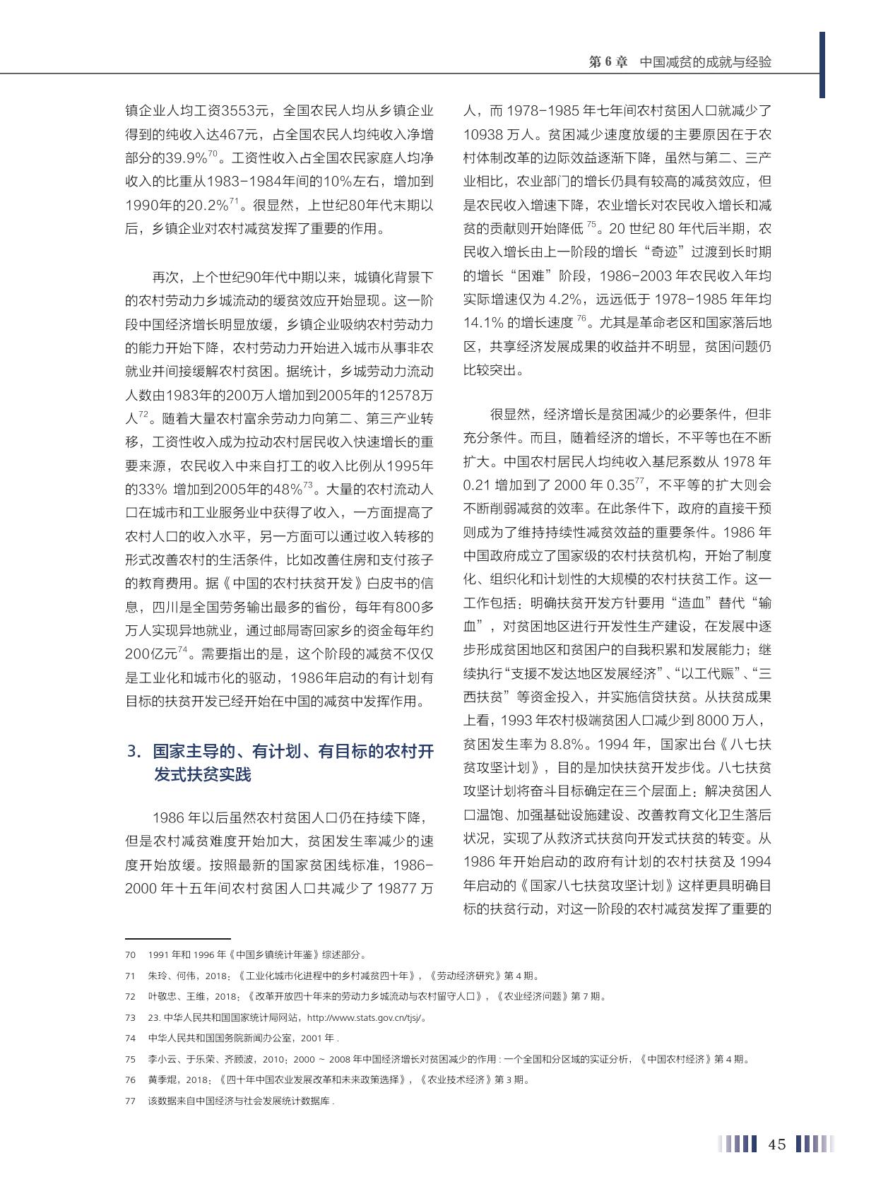 报告称,中国为亚洲减贫提供了“中国方案”。按现有农村扶贫标准来推算,中国的人均收入从1978年的200美元上升到2000年的960美元,贫困发生率从97.5%降到49.8%,减少了47.7个百分点。2000-2005年,随着人均国民收入从960美元上升到1760美元,贫困发生率又下降到30.2%,降低了19.6个百分点。2010年人均国民收入超过5000美元以后,贫困发生率为12.7%,又下降了17.5个百分点。随着人均国民收入的上升,减贫的速度开始放缓。实际上,第三段时间也是减贫难度最大、任务最艰巨的时刻,因为此时的贫困人口是贫困深度最深、受到多维贫困维度影响最多的群体。虽然从绝对数量上看没有前期减贫人数多,但每年1000多万的人口减贫,年度减贫速率之高,超过历史上的任何一个时期。