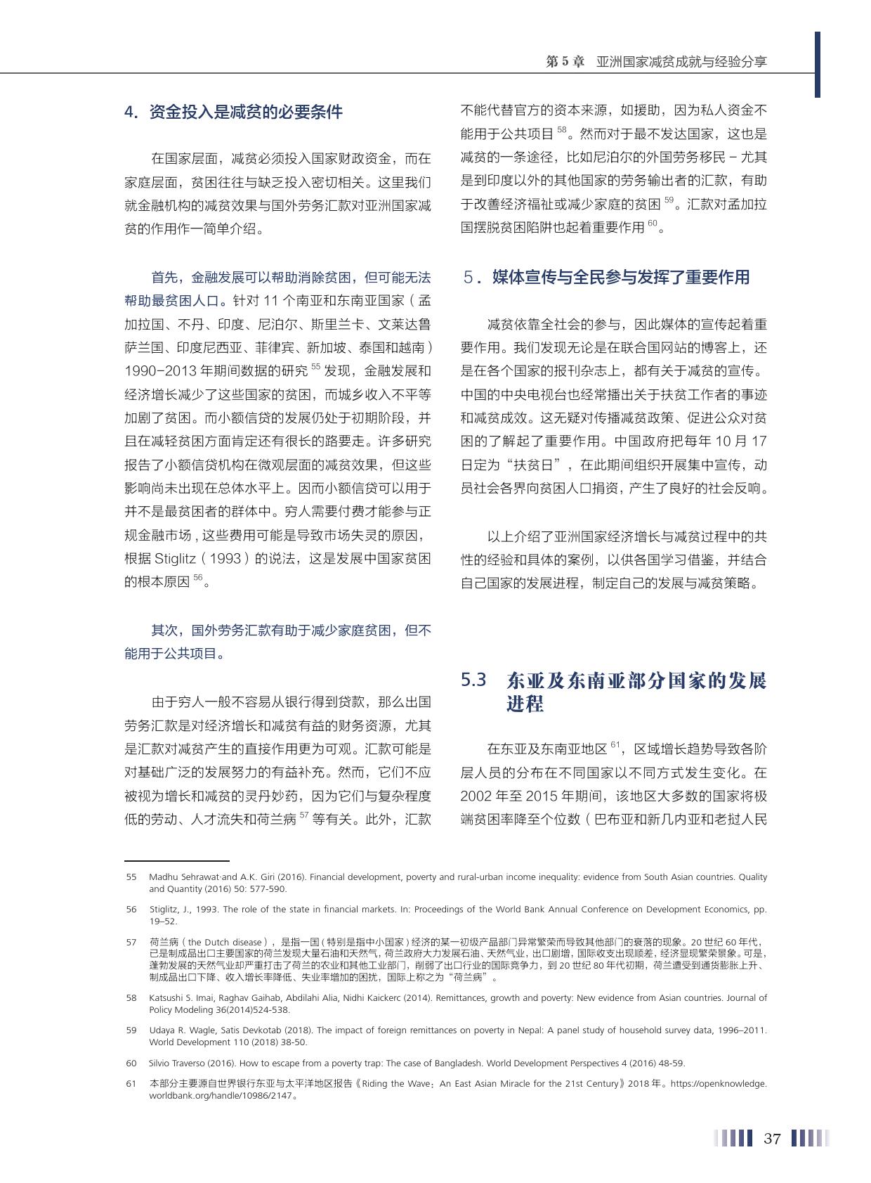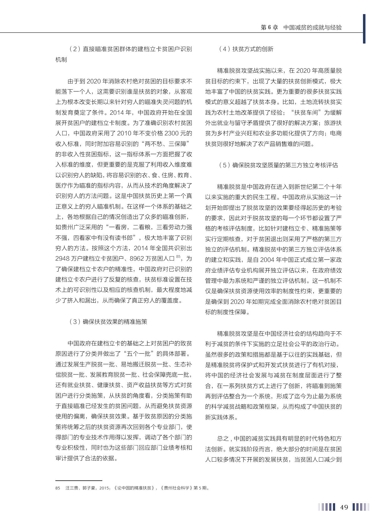 周小川介绍,报告将亚洲各国的减贫挑战和应对措施进行了横向对比,也找出了具有普遍意义的问题,并提出了解决方案。同时,中国作为世界上减贫人口最多的国家,是第一个完成联合国千年发展目标减贫目标的发展中国家。中国的减贫经验也是此次报告的一个重要内容,研究团队将中国减贫经验分为发展减贫和精准减贫两大时期,并对有关政策措施进行了系统分析。