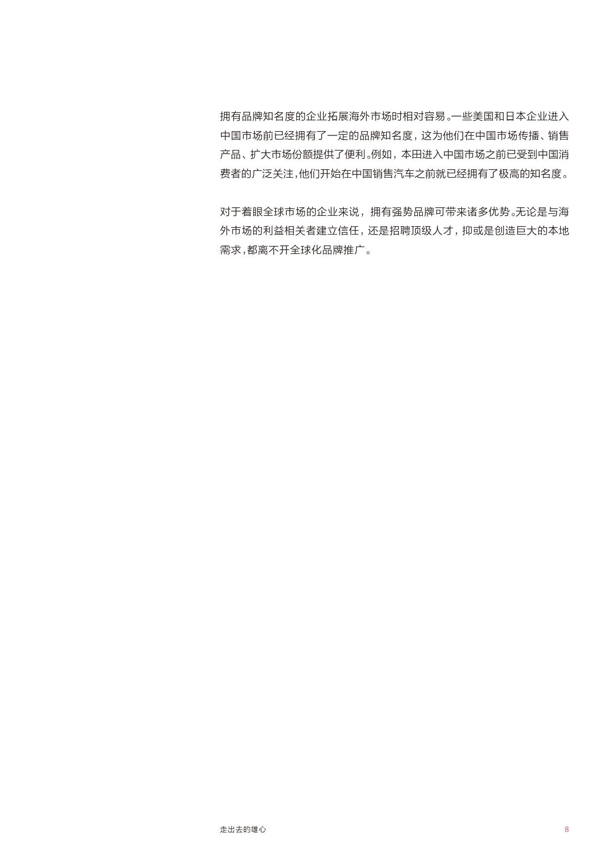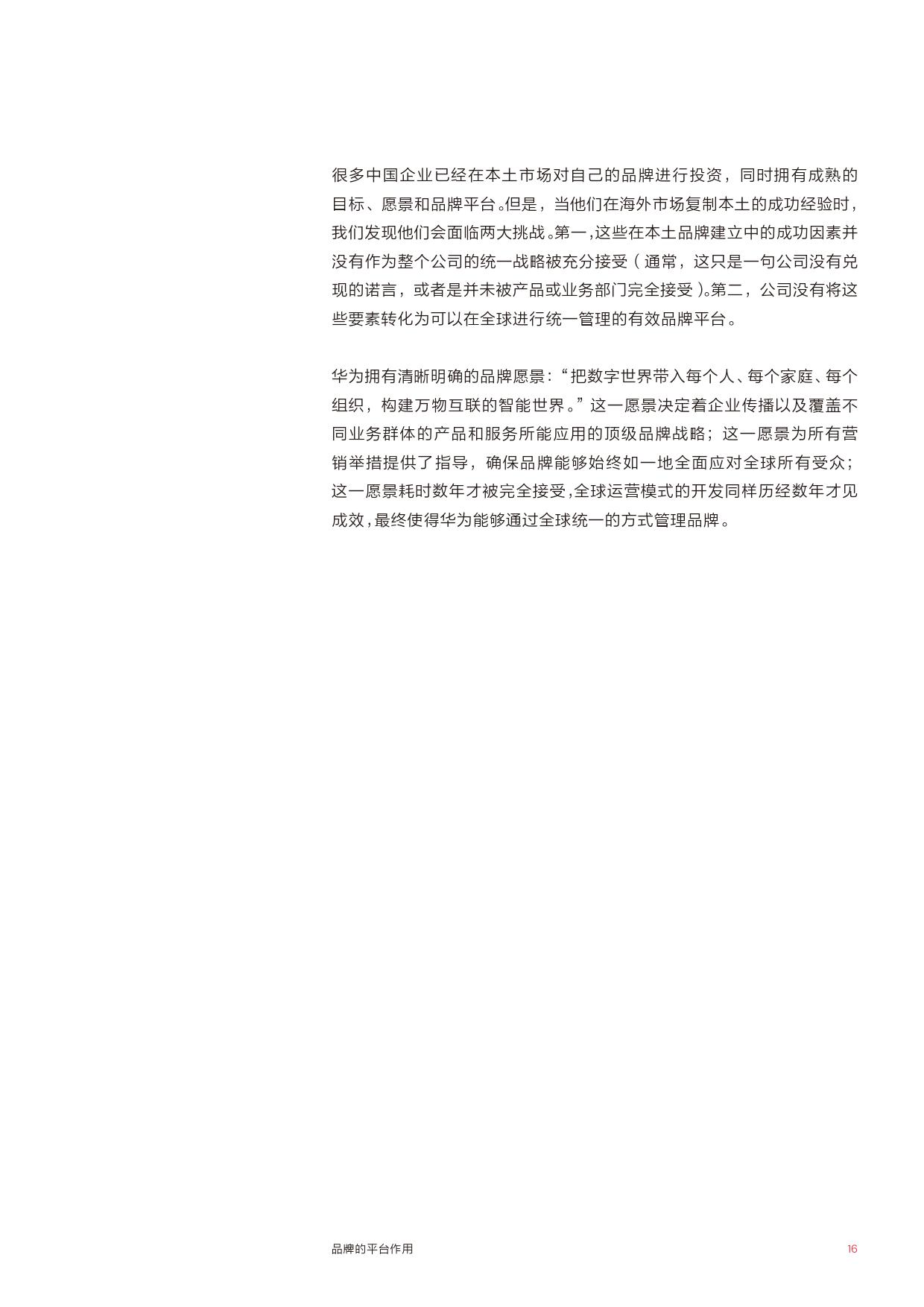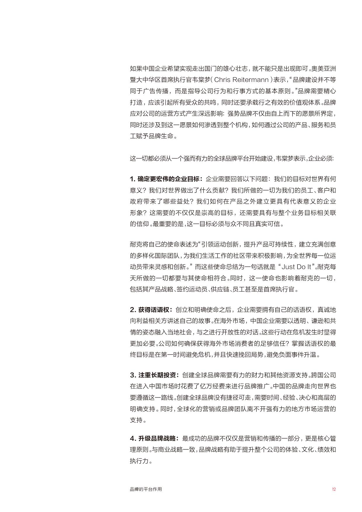 走出去的雄心——制定战略路线图,坚定海外扩张的决心,使营销职能部门在整个公司发挥领导作用品牌的平台作用。