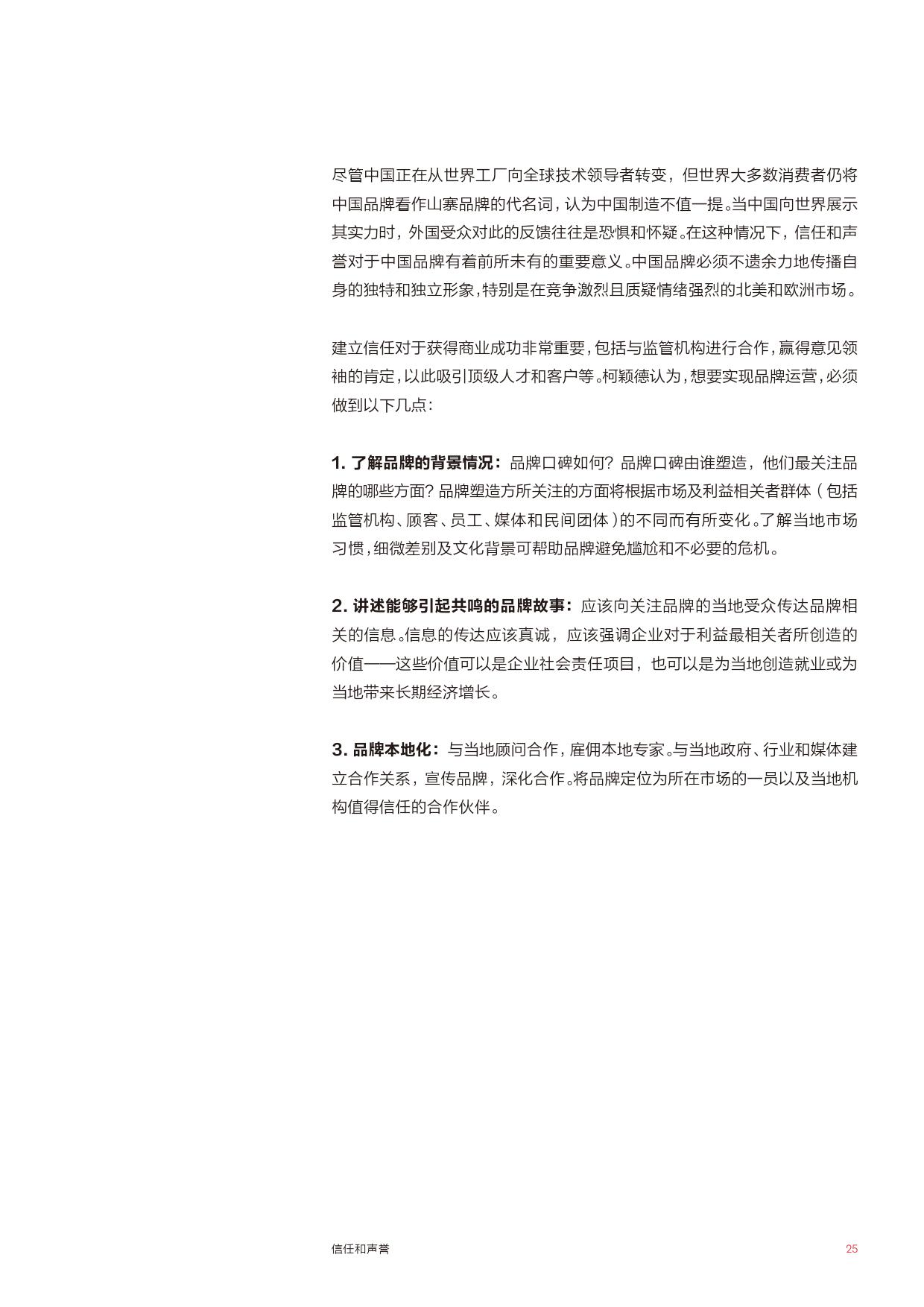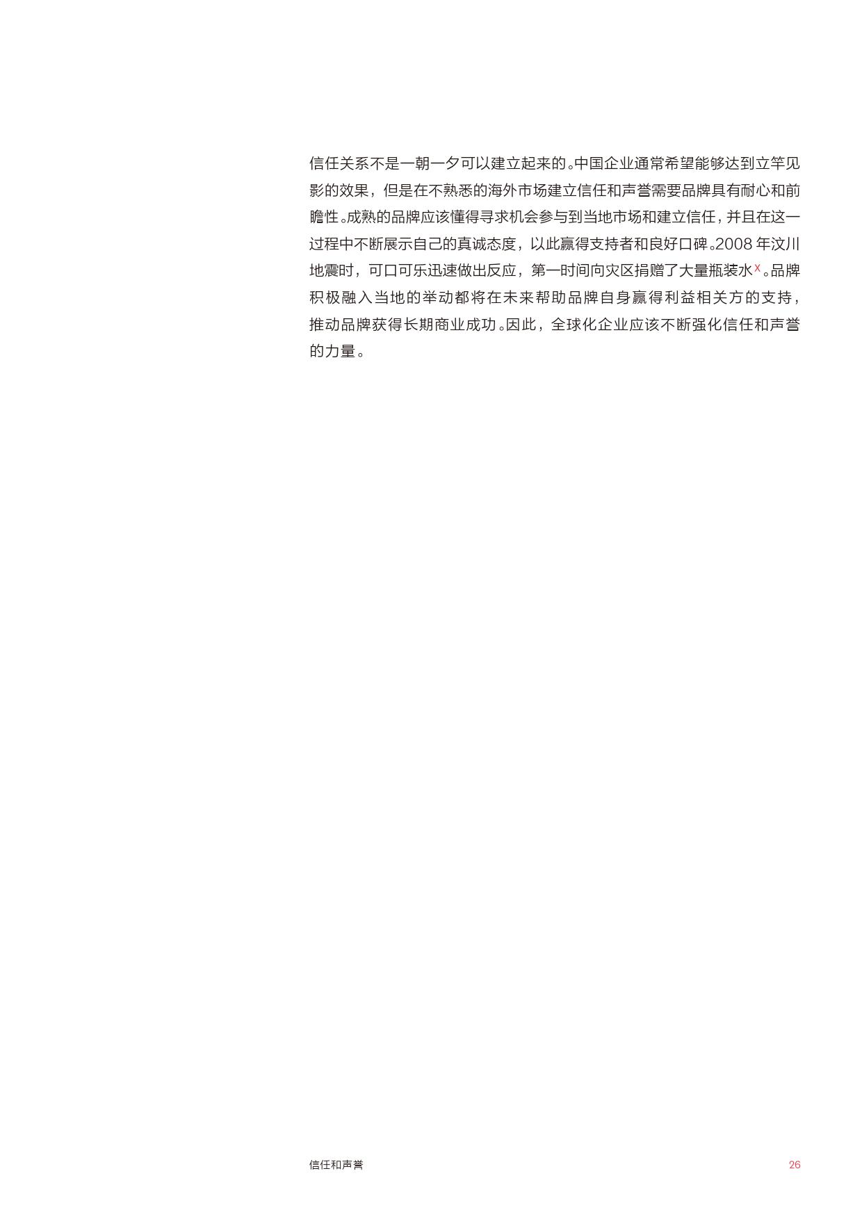 信任与声誉——中国企业需要提高声誉,赢得包括核心海外市场当地社区在内的主要利益相关方的信任。