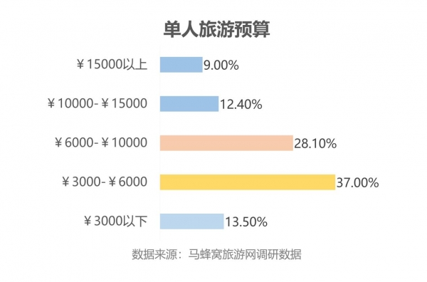 在旅行花费上,“十一”出行的一线城市白领人群,人均预算近7000元,其中预算在3000元至6000元之间的占比最大,比例为37%;其次是6000元至10000元区间,占比28%。马禹涛表示,“一线城市白领的出游预算普遍较高,因为他们对住宿和餐饮的品质要求更高,也更愿意花钱体验目的地的特色玩法”。