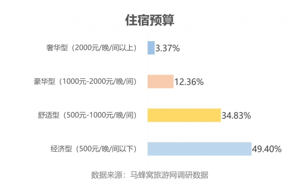 在食宿方面,51%的白领会选择每晚500元以上的酒店,55.1%的白领会在旅途中享受人均价格200元以上的餐厅。由此看来,白领人群对美食与住宿体验的要求较高,食宿预算也因此高于平均水平。