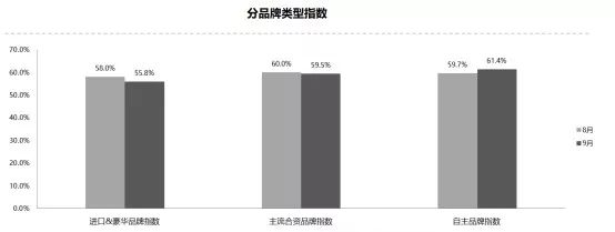 从分品牌类型指数看:2019年9月进口&豪华品牌指数、合资品牌指数较上月下降,自主品牌指数较上月上升.