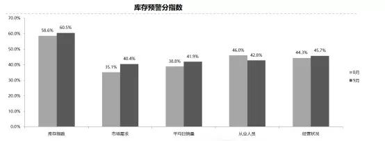 从分指数情况看:调查显示,本月库存指数60.5%,环比上升1.9个百分点。市场需求指数、平均日销量指数、经营状况指数环比上升,从业人员指数环比下降。
