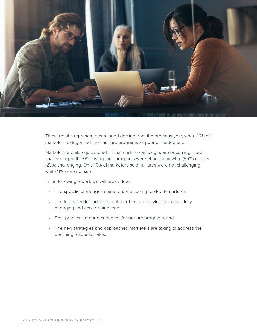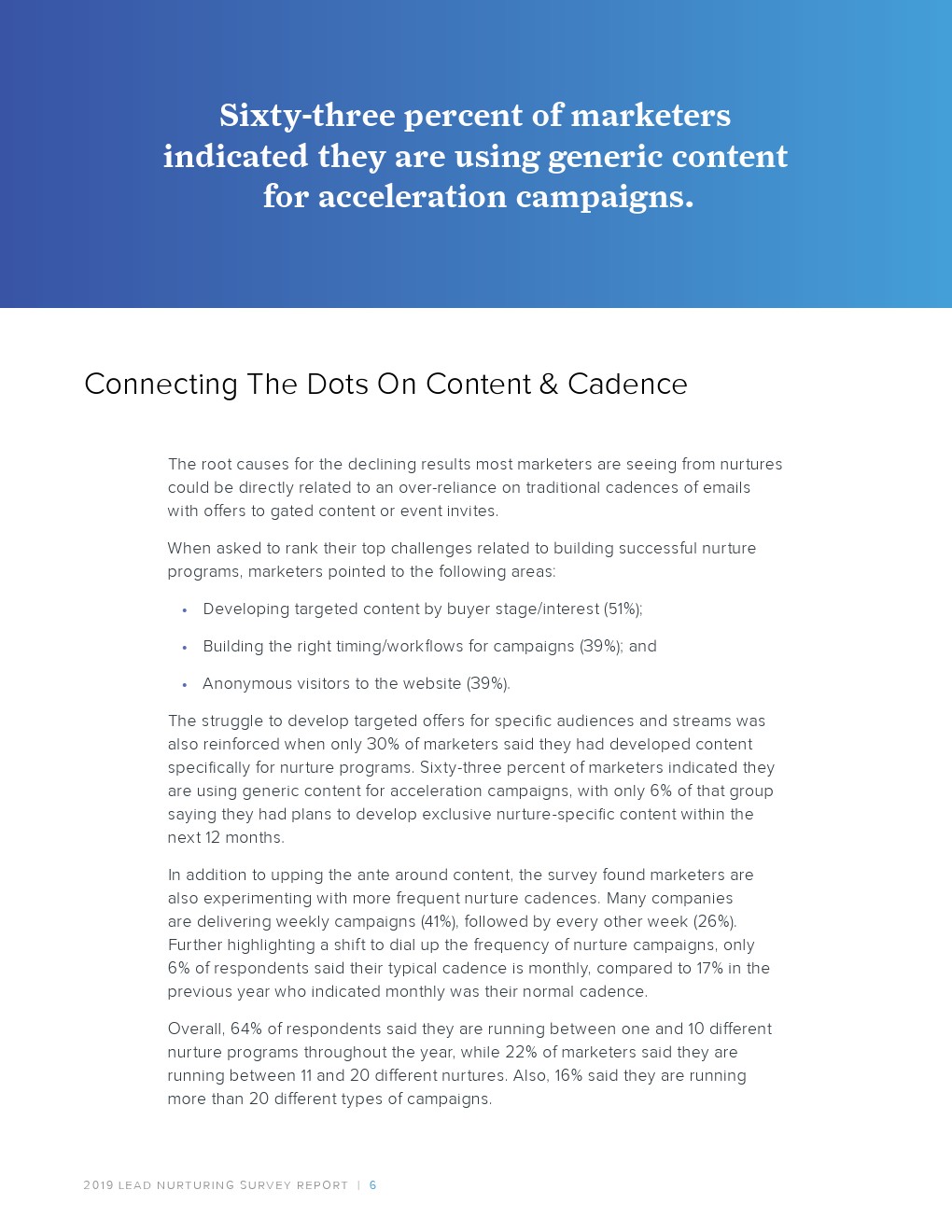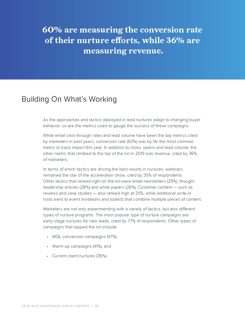 受访者还使用内容参与度数据(48%)、基于帐户的培养(48%)、重定向目标(43%)和使用意图数据(37%)进行测试。超过1/3的受访者(36%)表示,他们在潜在客户培养计划中增加了非封闭式内容的使用。