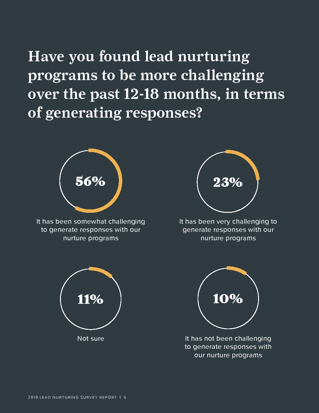 营销人员觉得在过去12-18个月潜在客户培养计划更具挑战性了。超过一半的受访者(56%)发现用其计划有些挑战性,还有23%报告说计划非常具有挑战性。