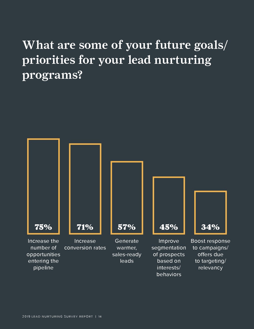 展望未来,3/4的受访者(75%)的未来潜在客户培养目标是增加进入渠道的机会数量,7/10将优先考虑提高转化率(71%)。