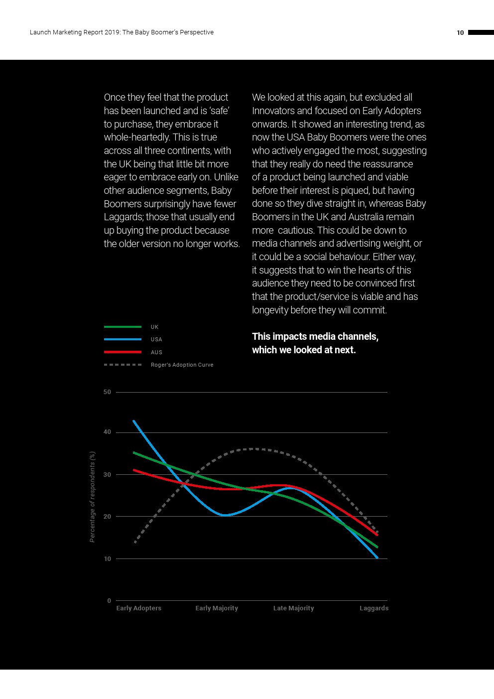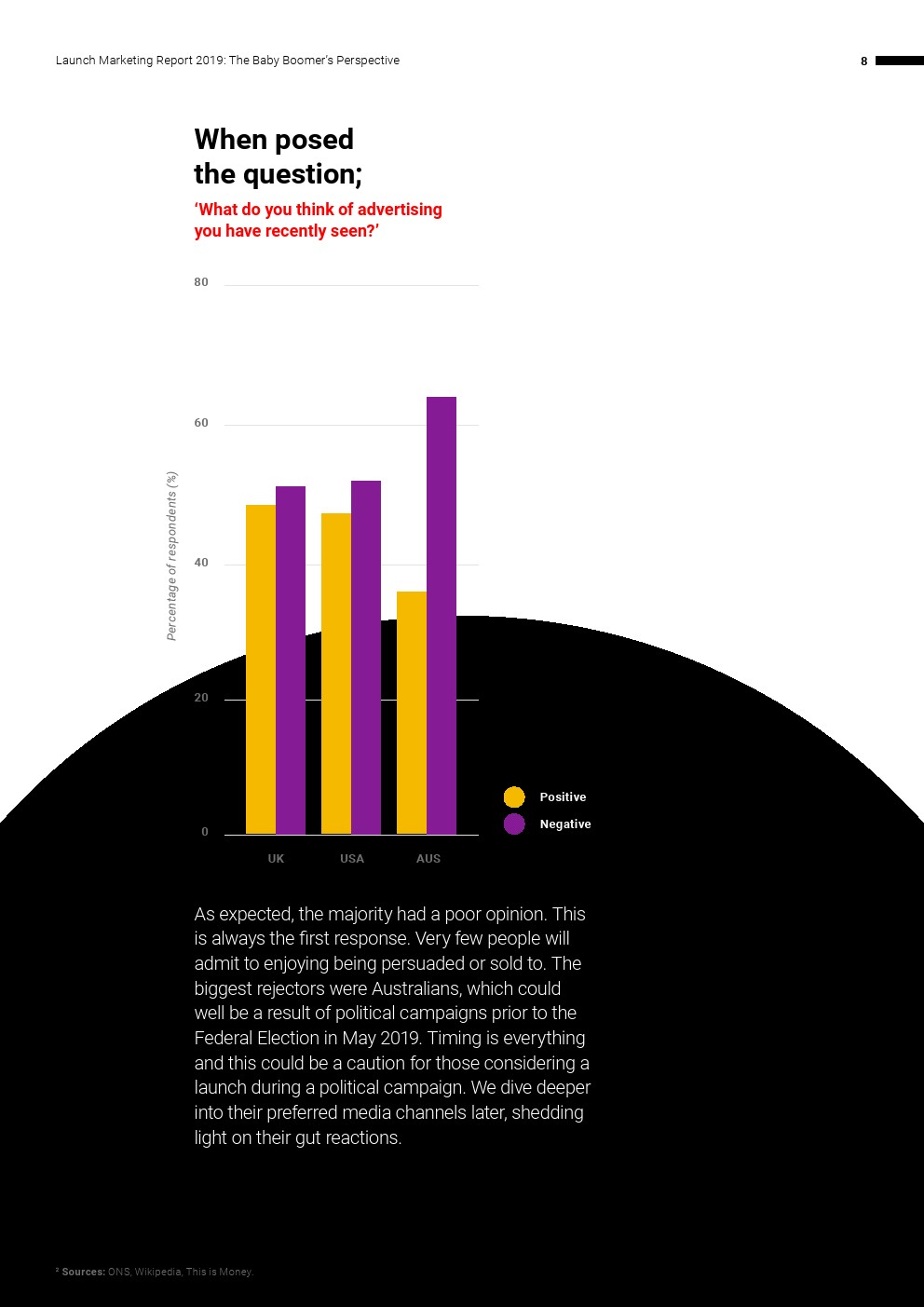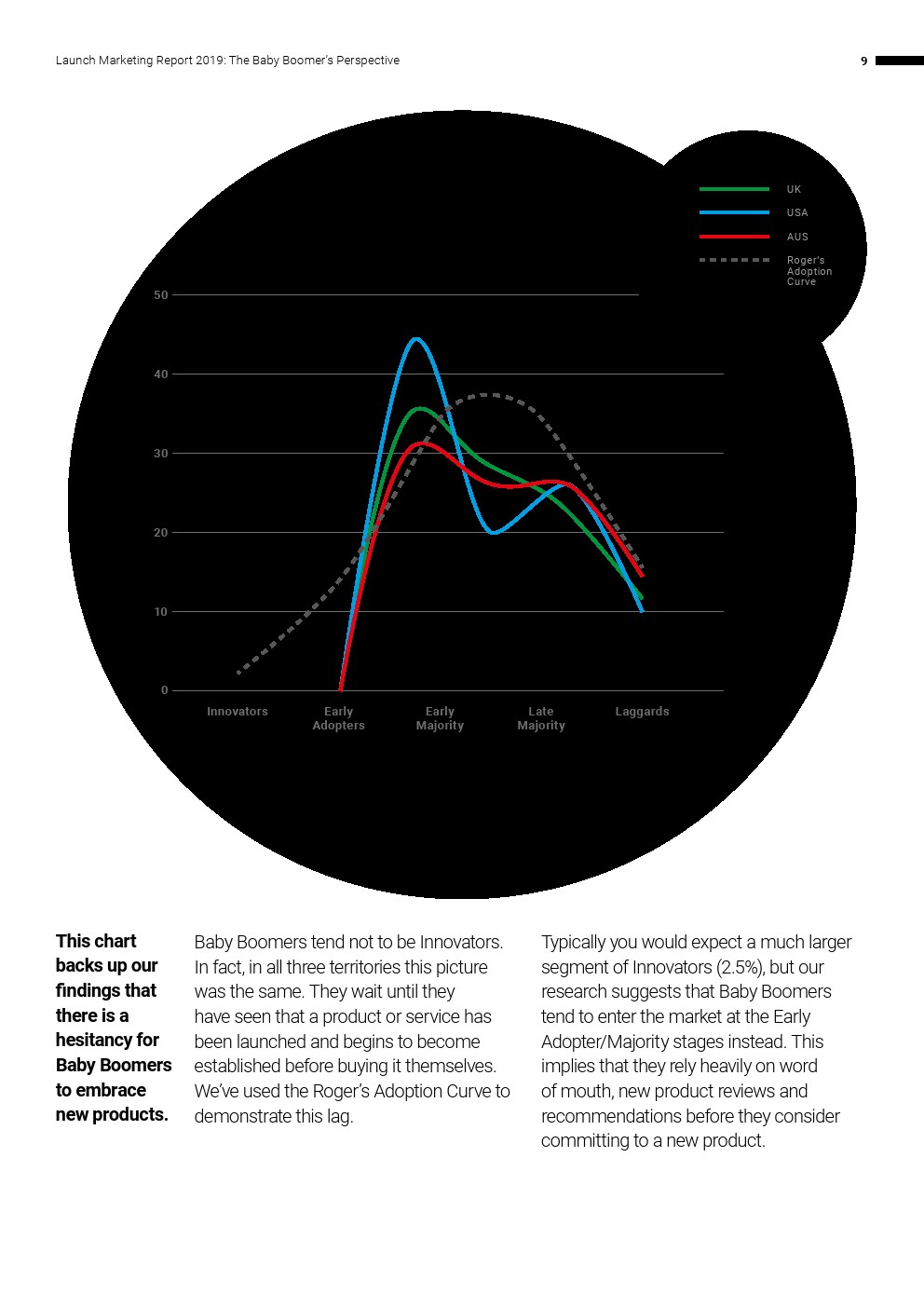尽管这个群体这么庞大,但是2018年的调查显示他们对新产品发布的参与度最低。因此,Five by five在英国、美国和澳大利亚调查了3000名婴儿潮一代消费者,希望进一步了解婴儿潮一代对新产品的态度。