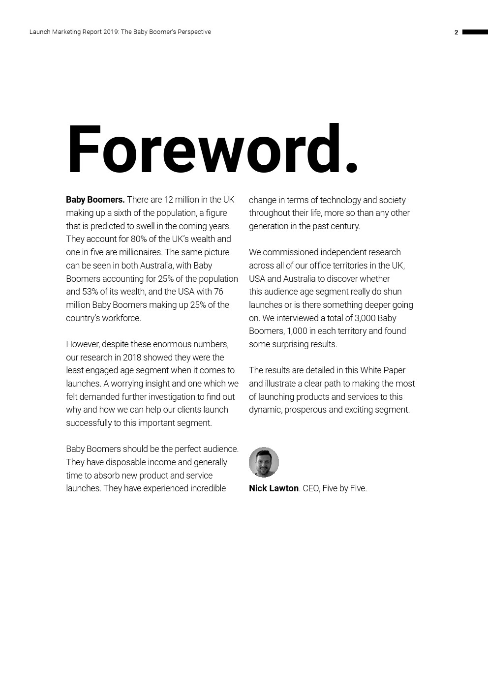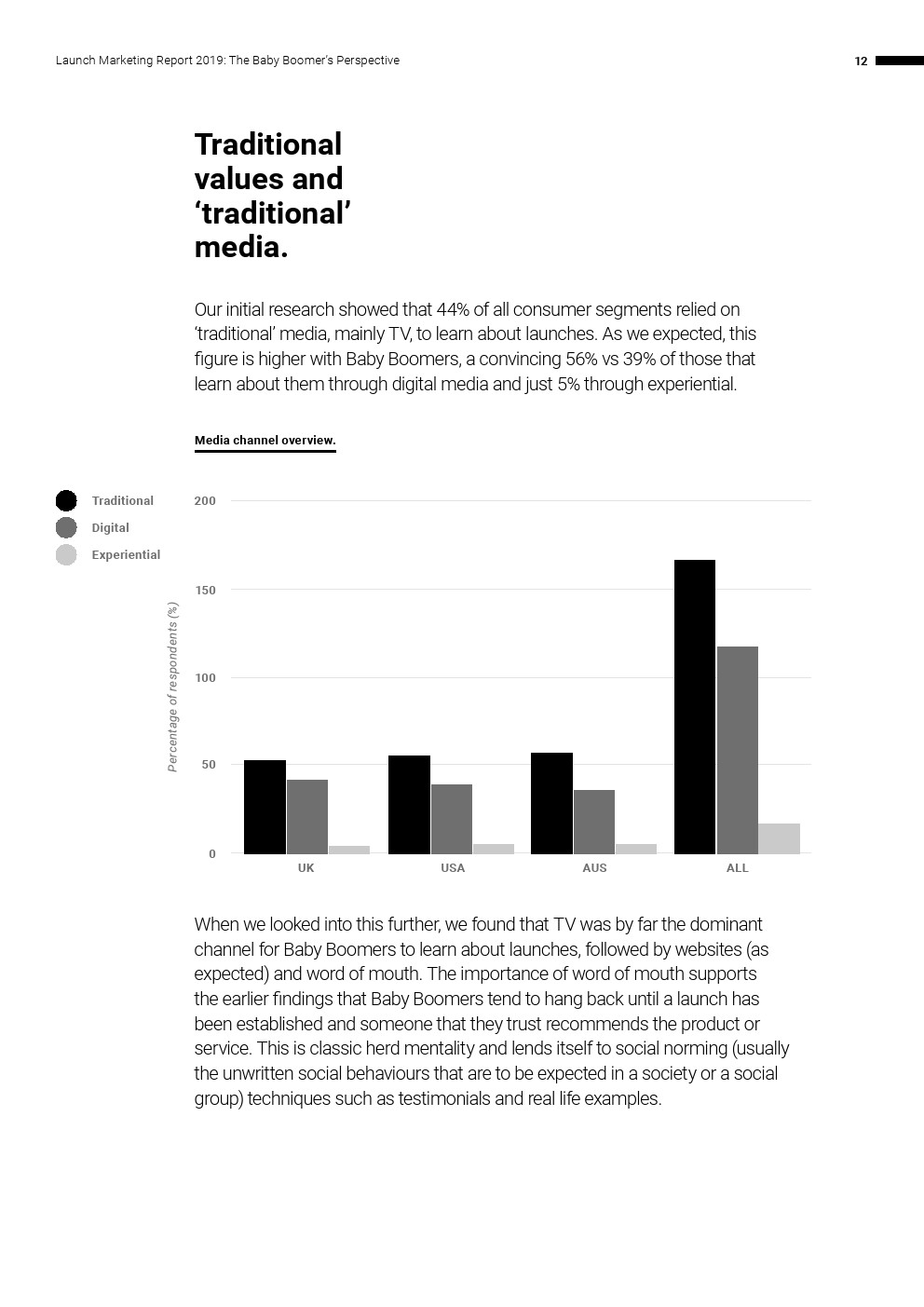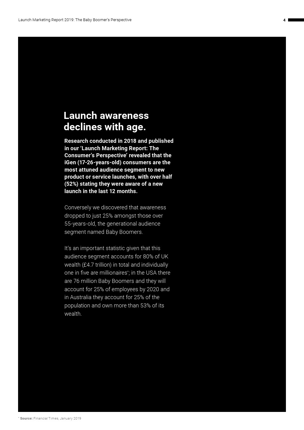 尽管这个群体这么庞大,但是2018年的调查显示他们对新产品发布的参与度最低。因此,Five by five在英国、美国和澳大利亚调查了3000名婴儿潮一代消费者,希望进一步了解婴儿潮一代对新产品的态度。