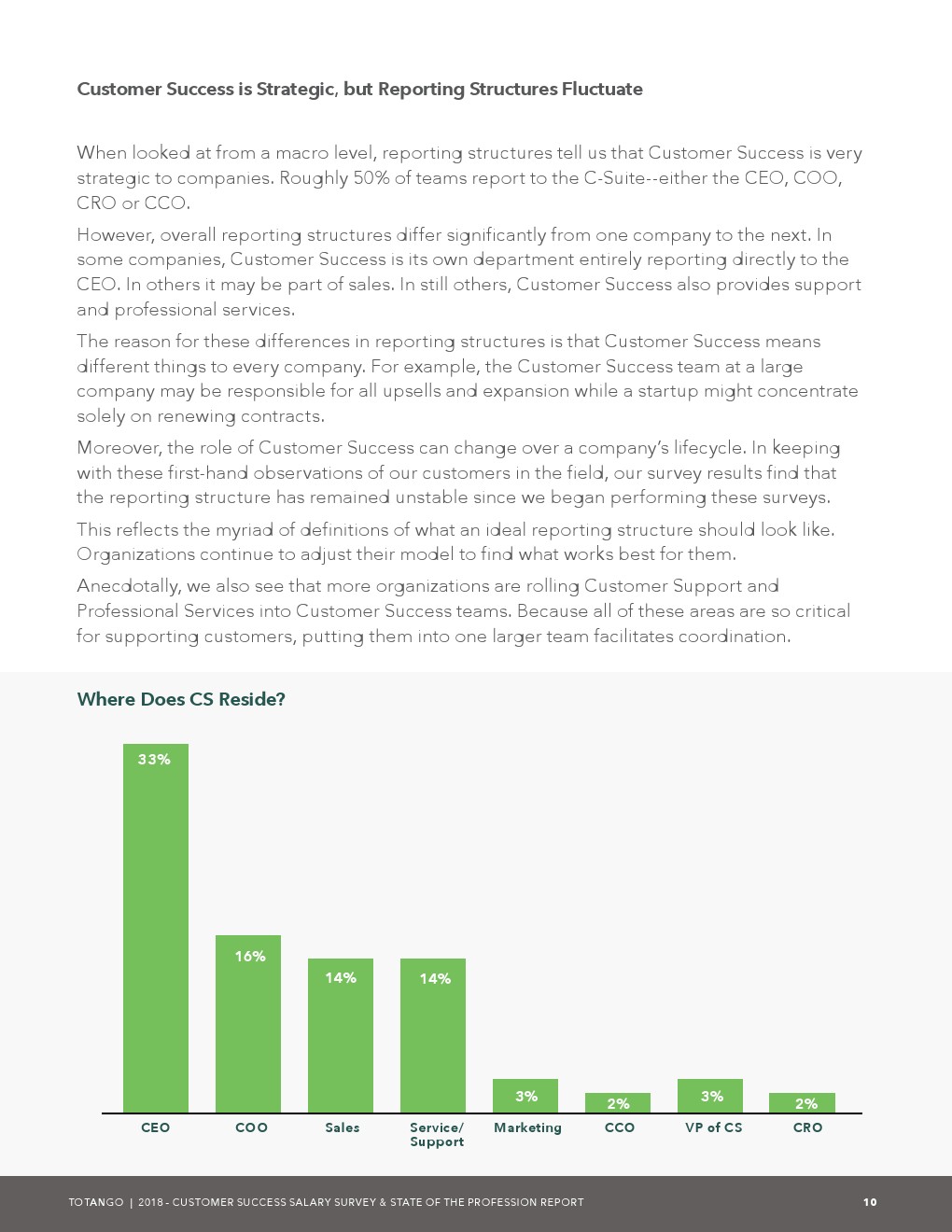 报告还评估来了客户成功专业人士的背景,对于那些从另一个业务领域进入该行业的受访者来说,来自销售(16%)的是来自营销(8%)的两倍多。