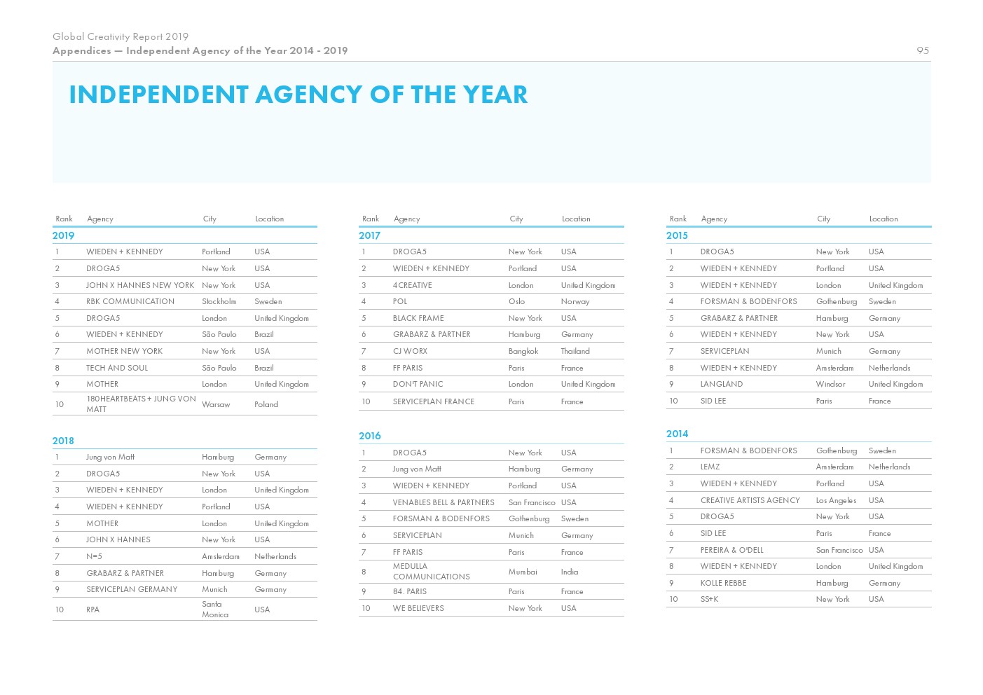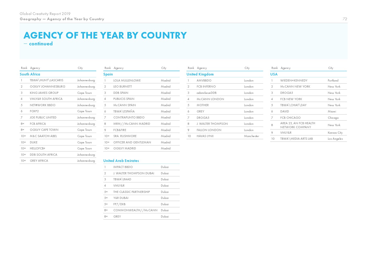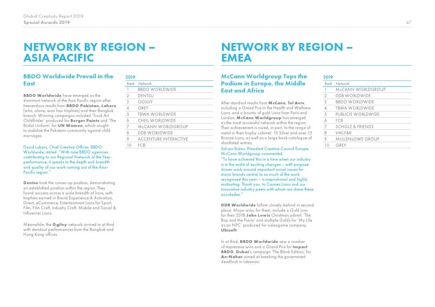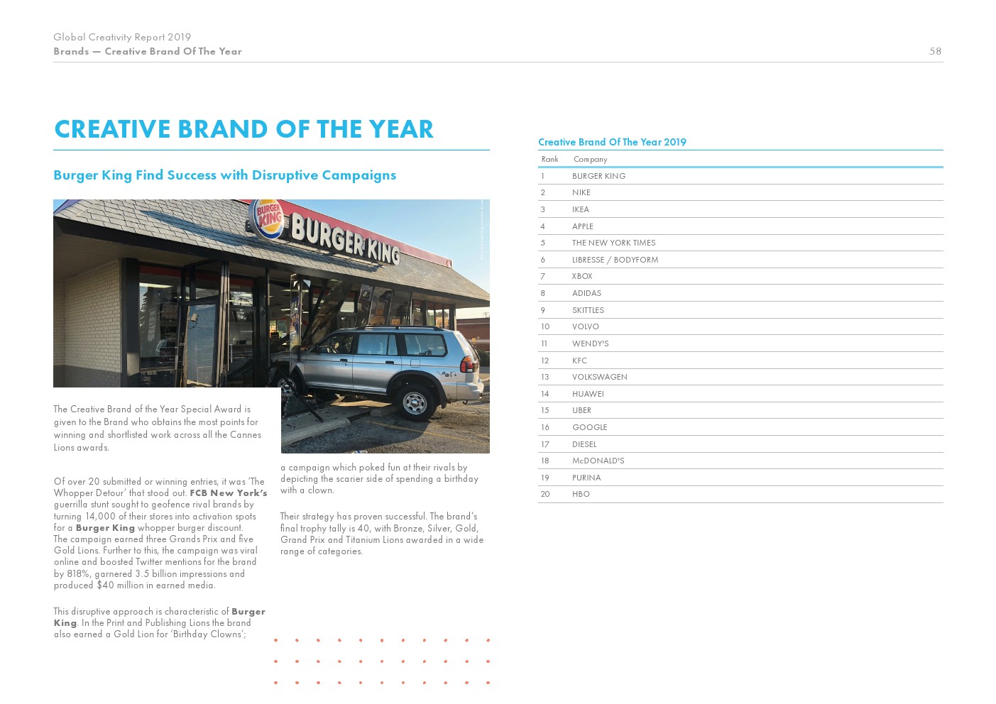 Cannes Lions的分析显示,优胜作品的创作团队比不成功的作品的团队多26%的工作人员。这种智慧告诉我们,多样性、增强协作和专业冲突正对创新至关重要。此外,由长期合作推动的作品的获奖率是平均水平的两倍。进一步证明,协作并建立牢固的关系时非凡的事情就会发生。