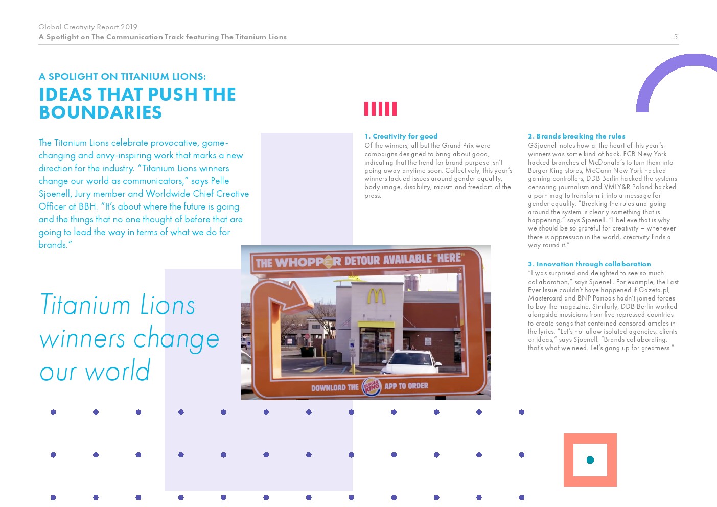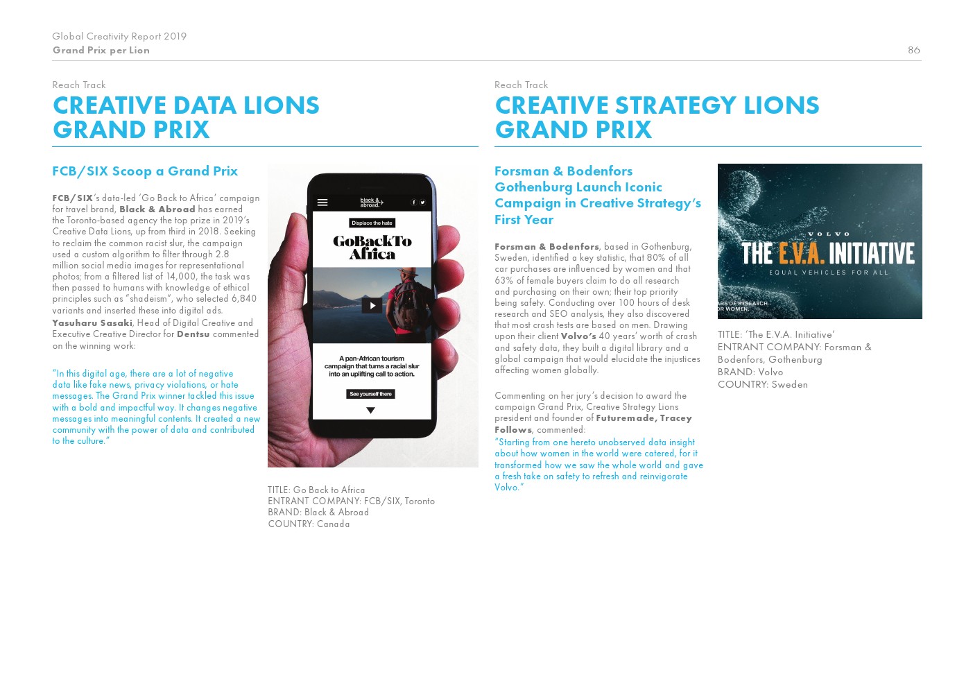 创造力是将社区凝聚在一起的统一力量。这一点在戛纳广告节上可以清楚地看到。在2019年专家汇聚戛纳,使自己沉浸在全球各地多样化的创意和业务解决方案中。评委们奖励最佳创意,并树立了从手工艺品到电子商务,体育到战略等全球行业的创新和有效基准。