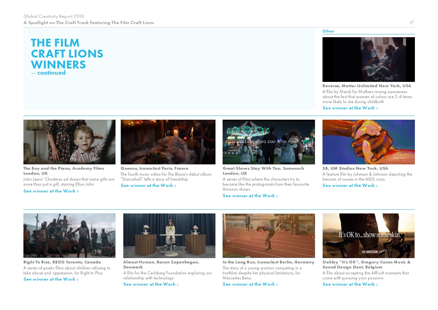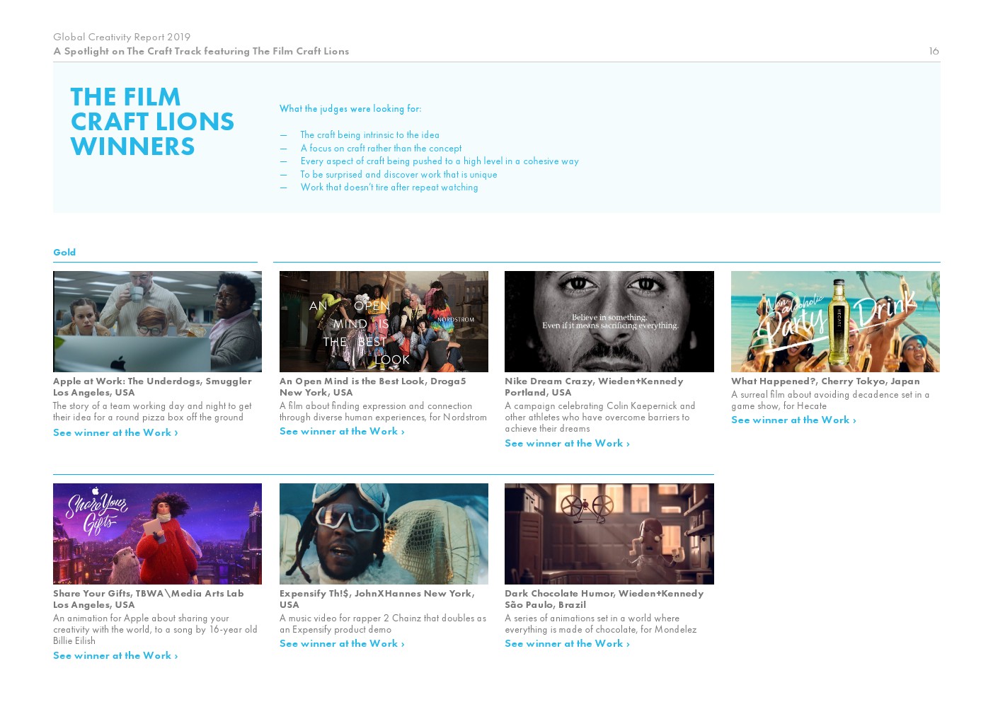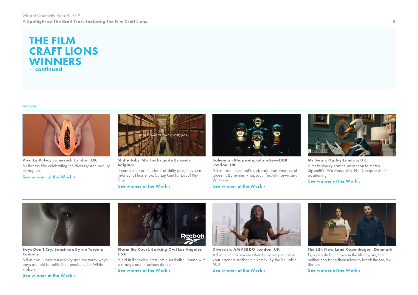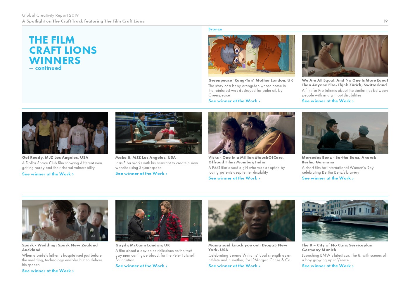 对于那些赢得金狮奖的广告来说,这只是开始。他们将金狮奖视作认知度的象征,也是进一步推动并提高标准。
