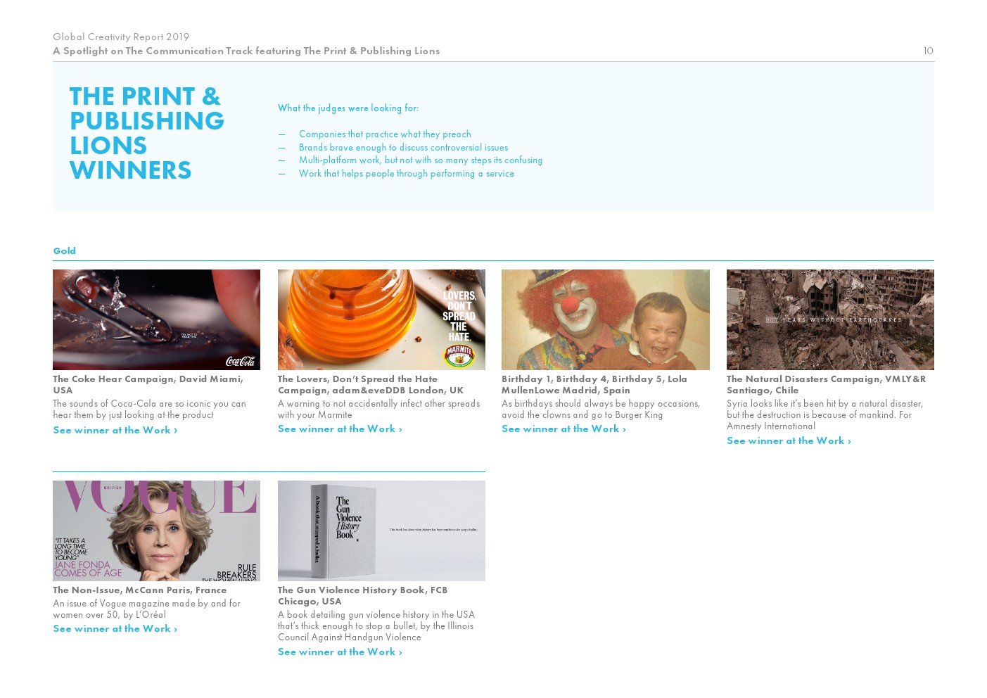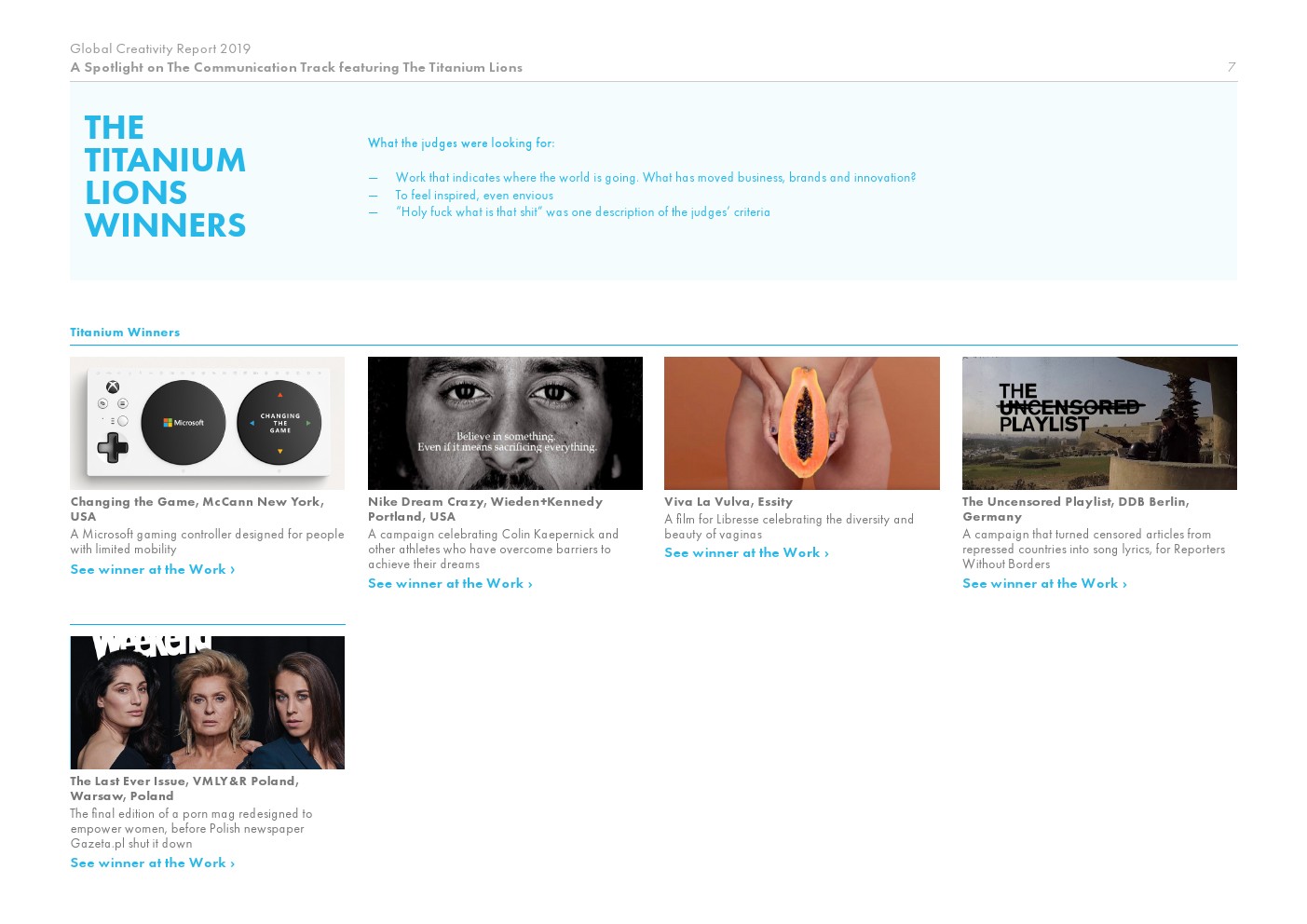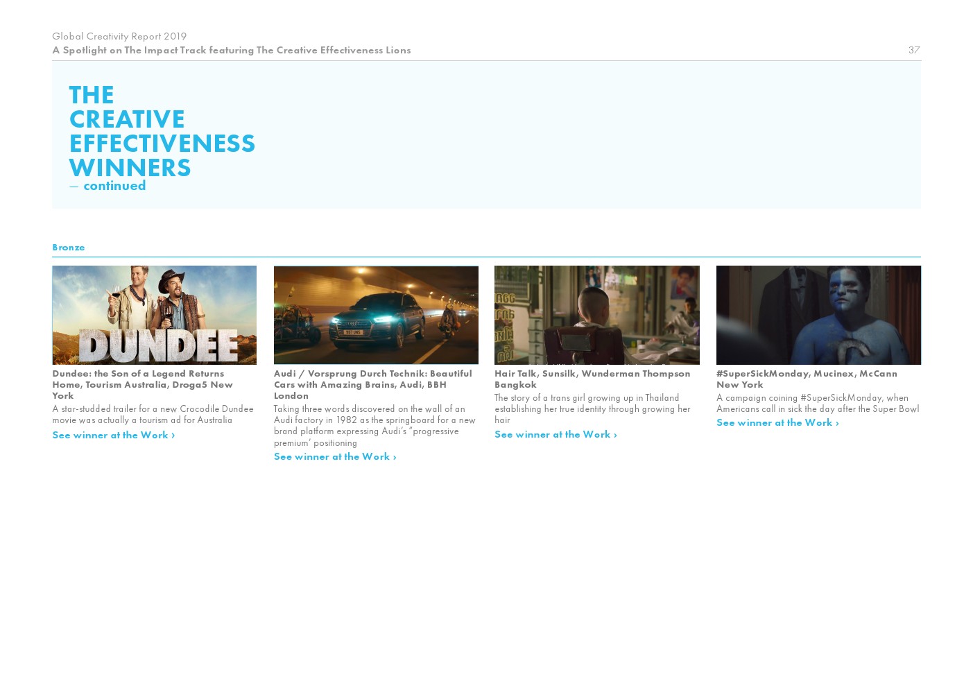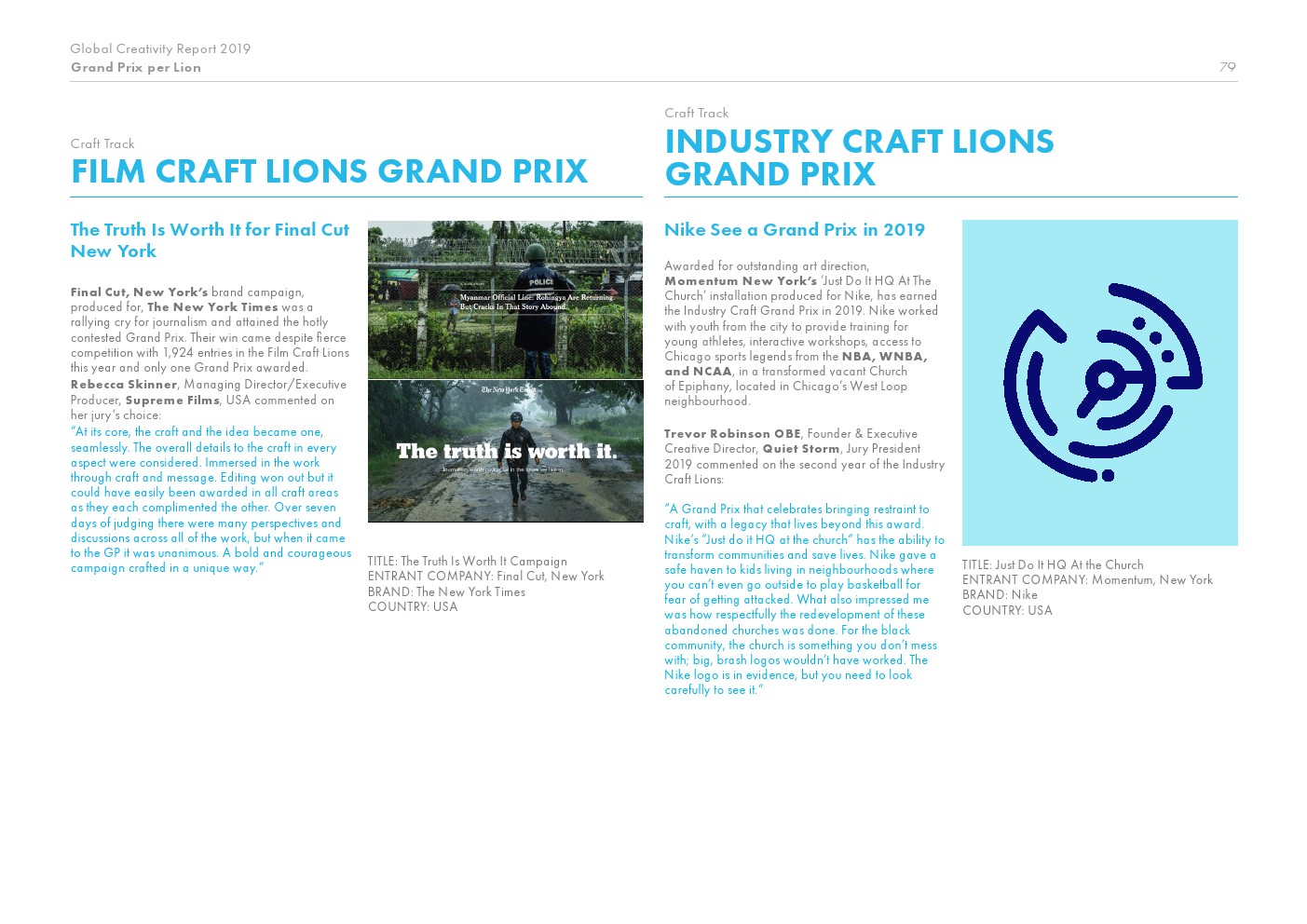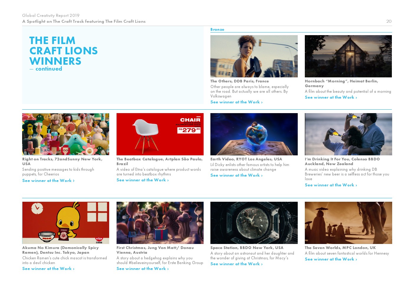 对于那些赢得金狮奖的广告来说,这只是开始。他们将金狮奖视作认知度的象征,也是进一步推动并提高标准。