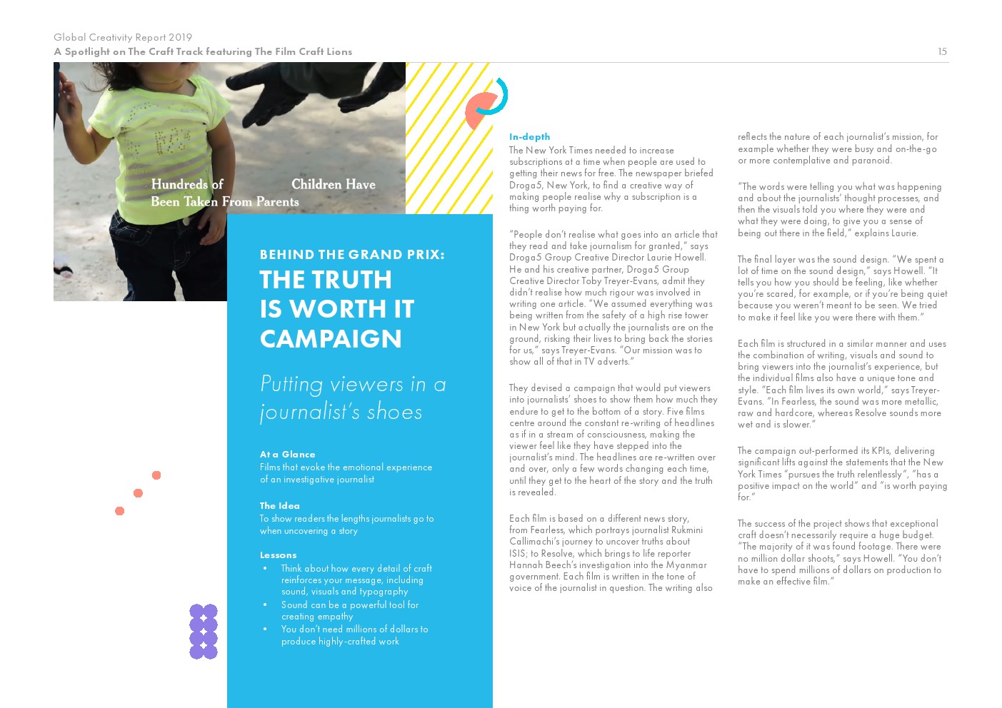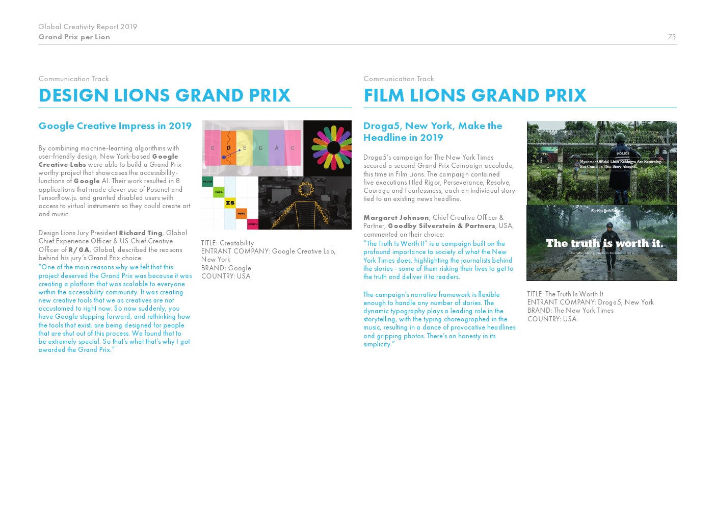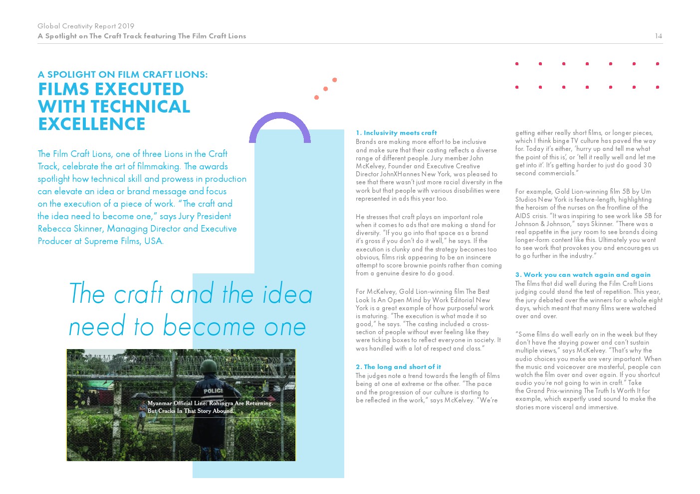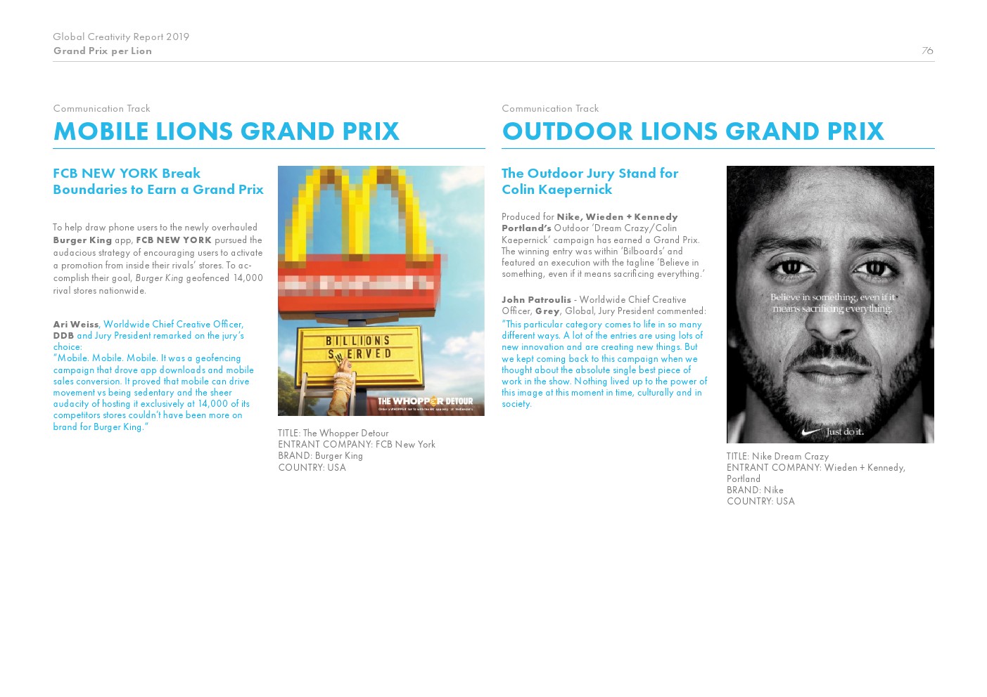 对于那些赢得金狮奖的广告来说,这只是开始。他们将金狮奖视作认知度的象征,也是进一步推动并提高标准。