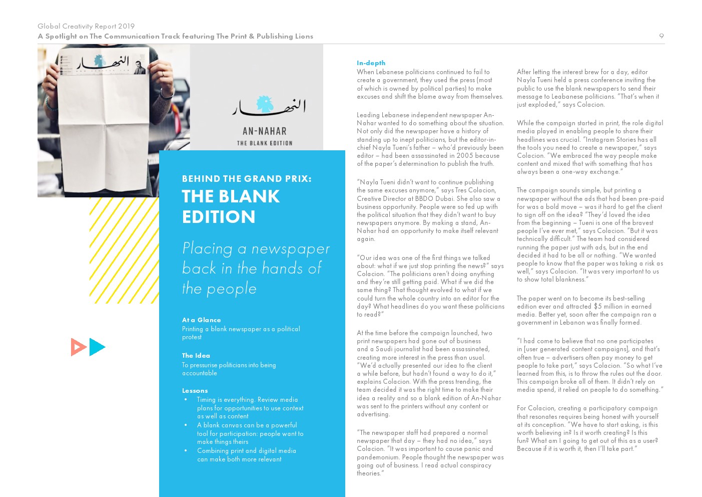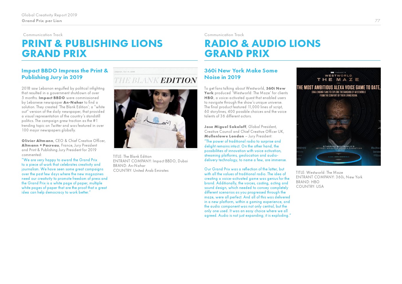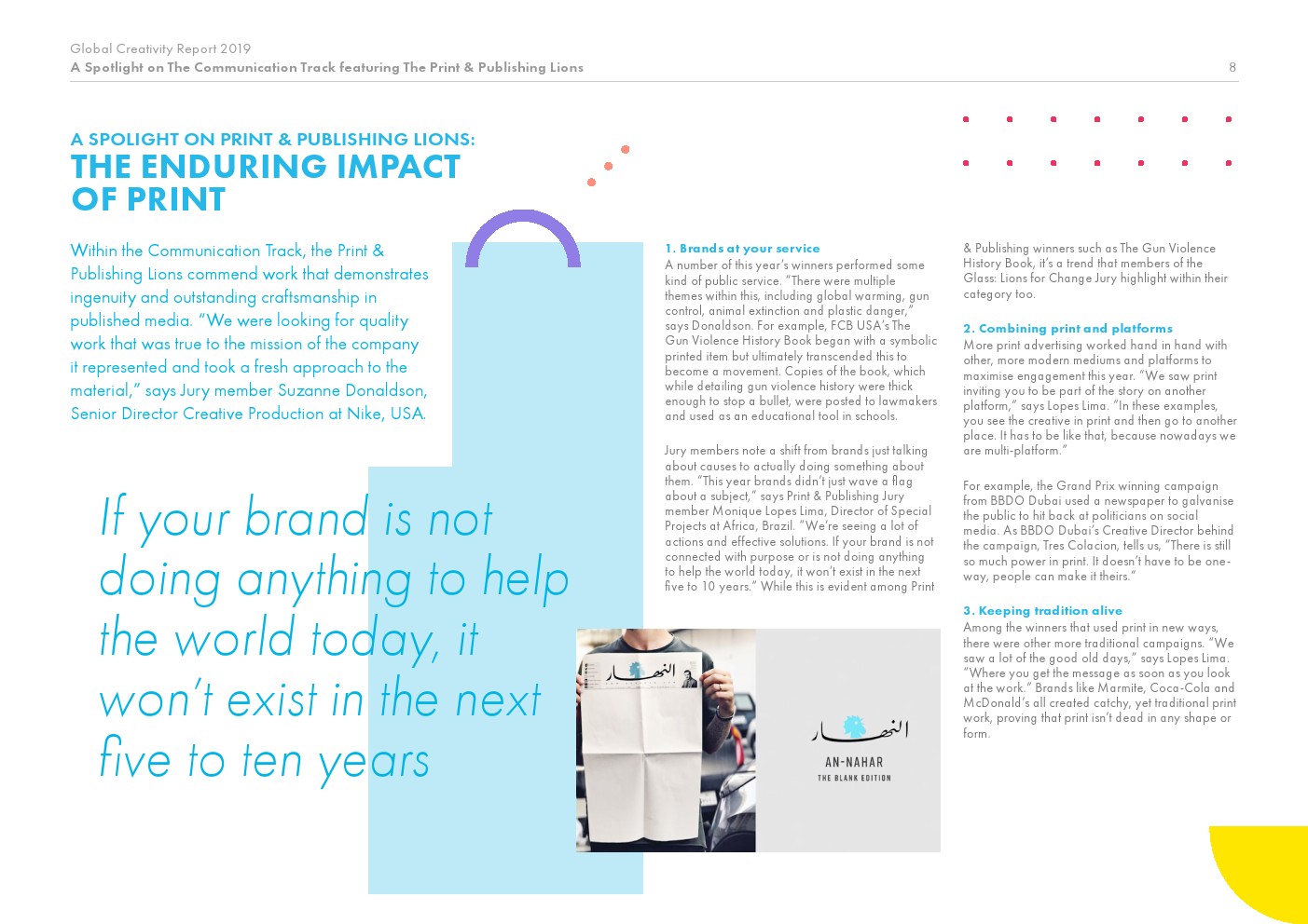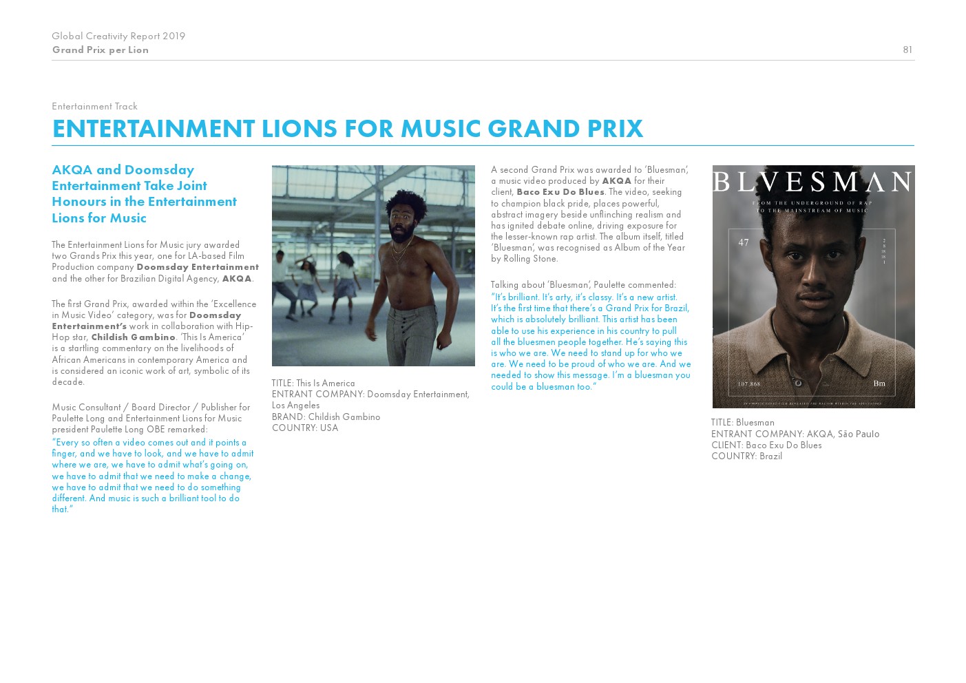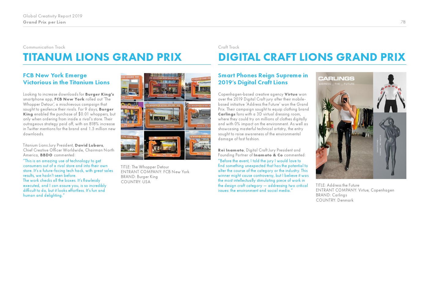 对于那些赢得金狮奖的广告来说,这只是开始。他们将金狮奖视作认知度的象征,也是进一步推动并提高标准。