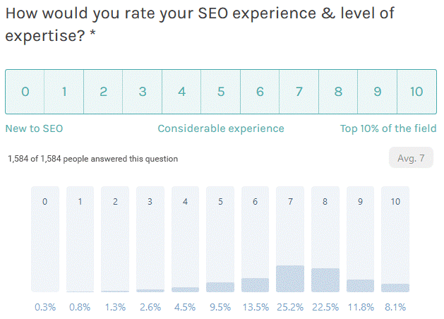 参加调查的人被要求对他们的SEO知识和经验水平进行评级。