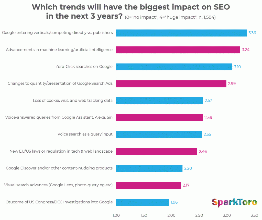2019年8月,Sparktoro对搜索引擎优化(SEO)领域的1584名专业人士进行了一项调查。