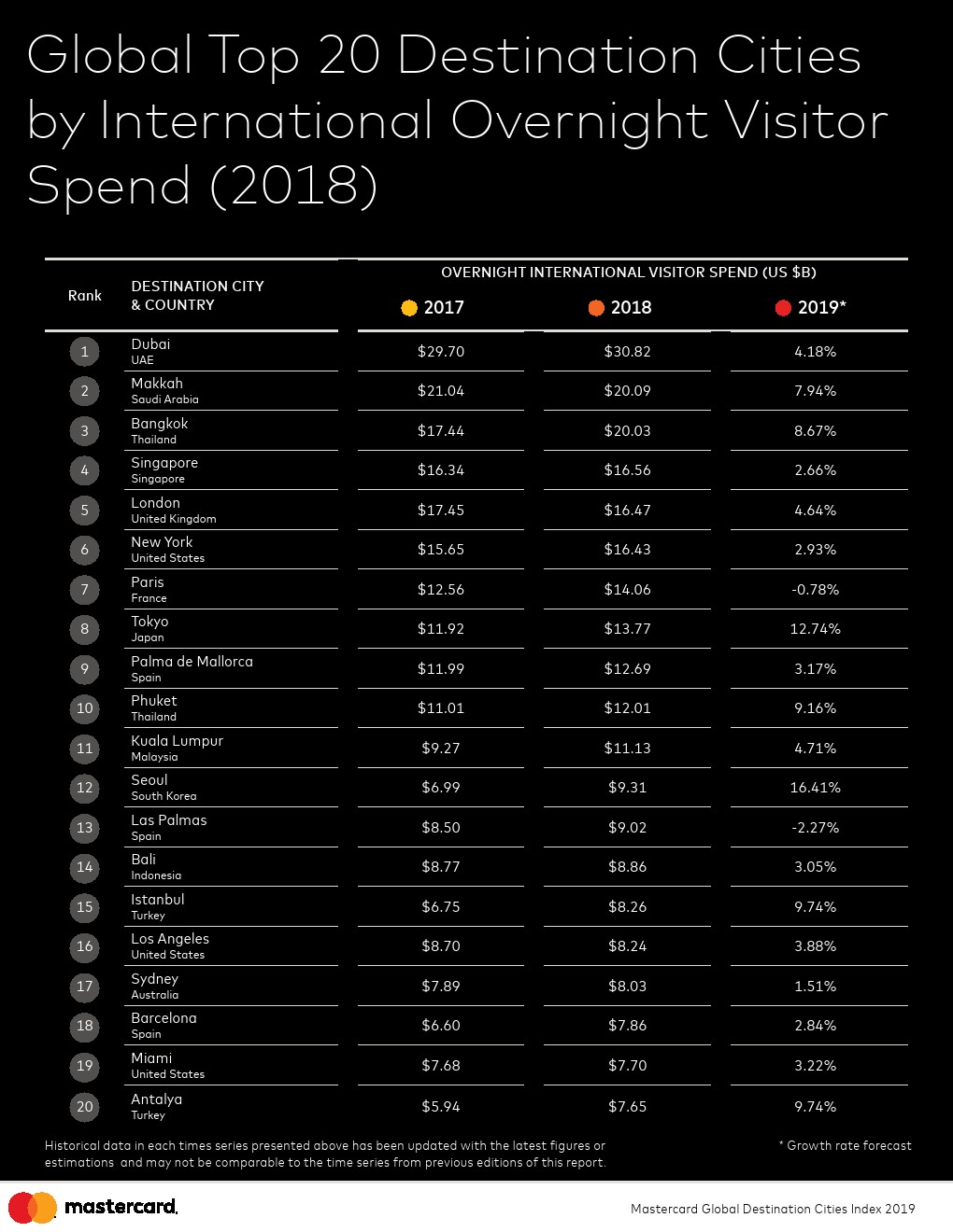 MasterCard的最新“全球旅游目的地城市指数”显示,前往世界各地城市的国际旅客在增长,他们推动了当地的发展。