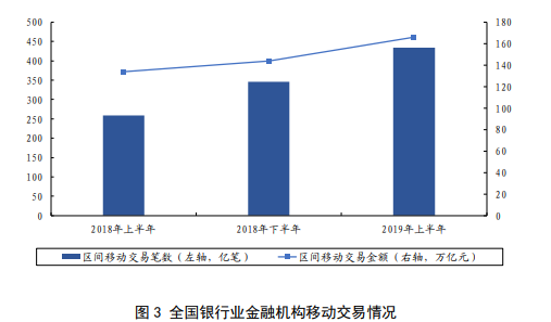 信息技术的发展和移动互联网的普及进一步降低了获得金融服务的门槛,显著增强了民众的金融服务获得感。全国使用电子支付的成年人比例达 82.39%,其中非银行支付机构网络支付业务及银行业机构移动支付业务发展最为迅速;2019 年上半年,银行业金融机构移动支付 434.24 亿笔,金额166.08 万亿元,呈现持续增长态势。